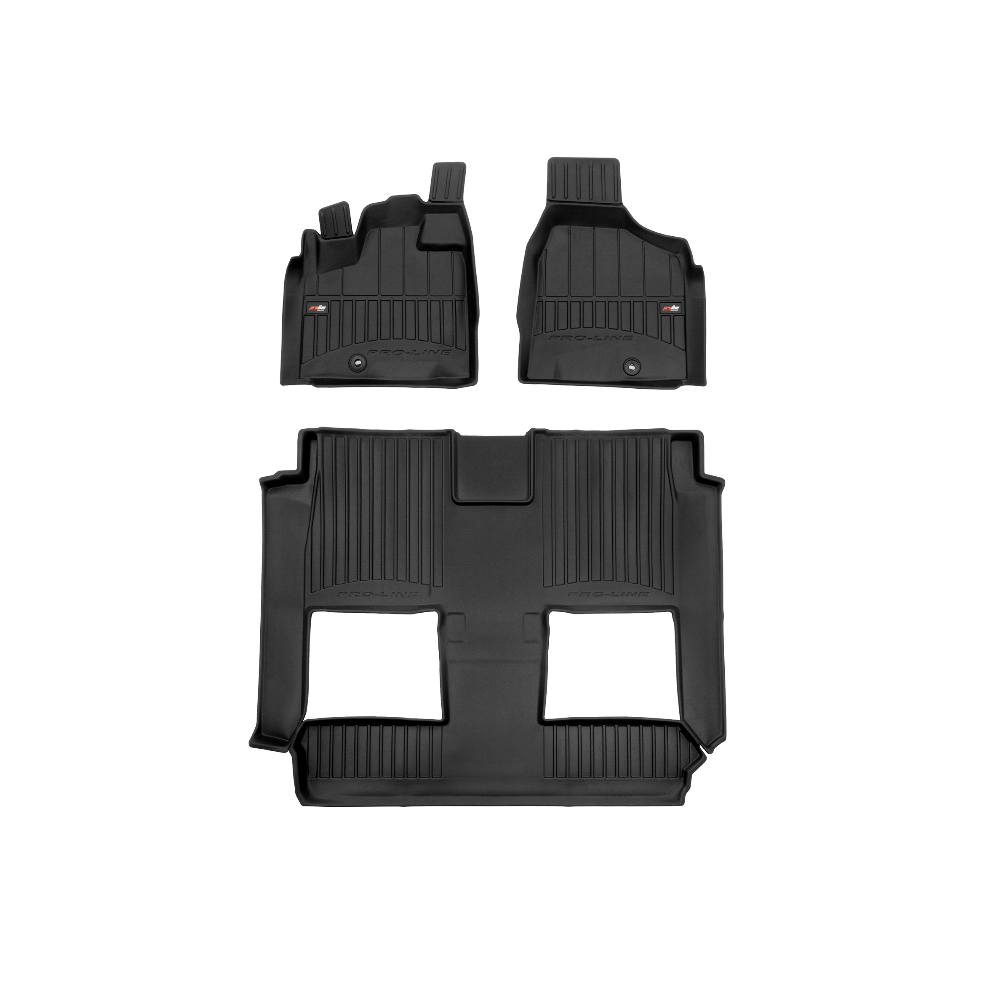 Guminiai ProLine 3D kilimėliai: (aukštos kokybės plastiko, gumos mišinys / TPE, komplektas - 3vnt., juodi, krašto aukštis 7 cm, montavimo būdas - spaustukai).AUTOMOBILIŲ KILIMĖLIAI FROGUM 3D PROLINE LUXURY• Dėl naujoviškos 3D skenavimo technologijos atitinka idealiai; • Kraštai papildomai apsaugoti – aukštis 7 cm, visada švarus automobilis; • Itin patvari medžiaga su unikalia neslystančia struktūra, atspari nešvarumams. • Išskirtinis stabilumas dėl spaustukų – lengvai montuojama spustelėjus; • Pakojo zonos apsauga – komfortas, leidžiantis nuleisti vairuotojo koją;3D ProLine aukštos kokybės guminiai kilimėliai padeda išlaikyti automobilį švarų. Modernus ir funkcionalus dizainas, ir ypač aukštas kraštas garantuoja efektyvų vandens ir purvo surinkimą ir neleidžia jiems išbėgti. Taip automobilio salonas išlieka švarus. Pagaminti iš aukštos kokybės gumos, kurioje nėra toksiškų komponentų. Bekvapis. Kilimėliai idealiai atitinka ir puikiai priglunda prie salono grindų. Guminiai kilimėliai išlaiko savo elastingumą net esant temperatūros pokyčiams. Specialus paviršius neleidžia kilimėliams slysti vairuojant, o tai daro didelę įtaką saugumui ir kelionės patogumui
