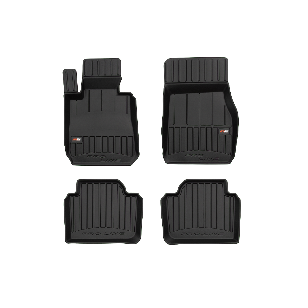 Guminiai ProLine 3D kilimėliai: (aukštos kokybės plastiko, gumos mišinys / TPE, komplektas - 4vnt., juodi, krašto aukštis 7 cm, montavimo būdas - spaustukai).AUTOMOBILIŲ KILIMĖLIAI FROGUM 3D PROLINE LUXURY• Dėl naujoviškos 3D skenavimo technologijos atitinka idealiai; • Kraštai papildomai apsaugoti – aukštis 7 cm, visada švarus automobilis; • Itin patvari medžiaga su unikalia neslystančia struktūra, atspari nešvarumams. • Išskirtinis stabilumas dėl spaustukų – lengvai montuojama spustelėjus; • Pakojo zonos apsauga – komfortas, leidžiantis nuleisti vairuotojo koją;3D ProLine aukštos kokybės guminiai kilimėliai padeda išlaikyti automobilį švarų. Modernus ir funkcionalus dizainas, ir ypač aukštas kraštas garantuoja efektyvų vandens ir purvo surinkimą ir neleidžia jiems išbėgti. Taip automobilio salonas išlieka švarus. Pagaminti iš aukštos kokybės gumos, kurioje nėra toksiškų komponentų. Bekvapis. Kilimėliai idealiai atitinka ir puikiai priglunda prie salono grindų. Guminiai kilimėliai išlaiko savo elastingumą net esant temperatūros pokyčiams. Specialus paviršius neleidžia kilimėliams slysti vairuojant, o tai daro didelę įtaką saugumui ir kelionės patogumui
