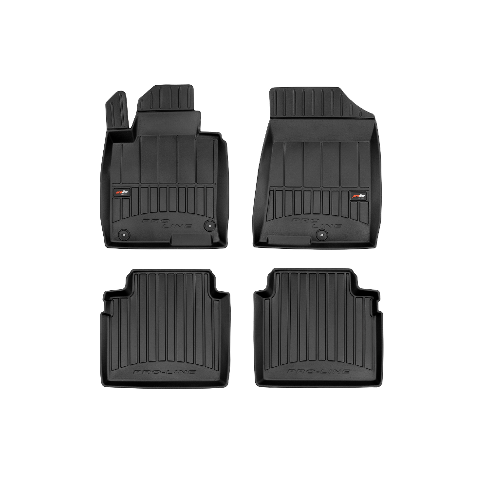 Guminiai ProLine 3D kilimėliai: (aukštos kokybės plastiko, gumos mišinys / TPE, komplektas - 4vnt., juodi, krašto aukštis 7 cm, montavimo būdas - spaustukai).AUTOMOBILIŲ KILIMĖLIAI FROGUM 3D PROLINE LUXURY• Dėl naujoviškos 3D skenavimo technologijos atitinka idealiai; • Kraštai papildomai apsaugoti – aukštis 7 cm, visada švarus automobilis; • Itin patvari medžiaga su unikalia neslystančia struktūra, atspari nešvarumams. • Išskirtinis stabilumas dėl spaustukų – lengvai montuojama spustelėjus; • Pakojo zonos apsauga – komfortas, leidžiantis nuleisti vairuotojo koją;3D ProLine aukštos kokybės guminiai kilimėliai padeda išlaikyti automobilį švarų. Modernus ir funkcionalus dizainas, ir ypač aukštas kraštas garantuoja efektyvų vandens ir purvo surinkimą ir neleidžia jiems išbėgti. Taip automobilio salonas išlieka švarus. Pagaminti iš aukštos kokybės gumos, kurioje nėra toksiškų komponentų. Bekvapis. Kilimėliai idealiai atitinka ir puikiai priglunda prie salono grindų. Guminiai kilimėliai išlaiko savo elastingumą net esant temperatūros pokyčiams. Specialus paviršius neleidžia kilimėliams slysti vairuojant, o tai daro didelę įtaką saugumui ir kelionės patogumui