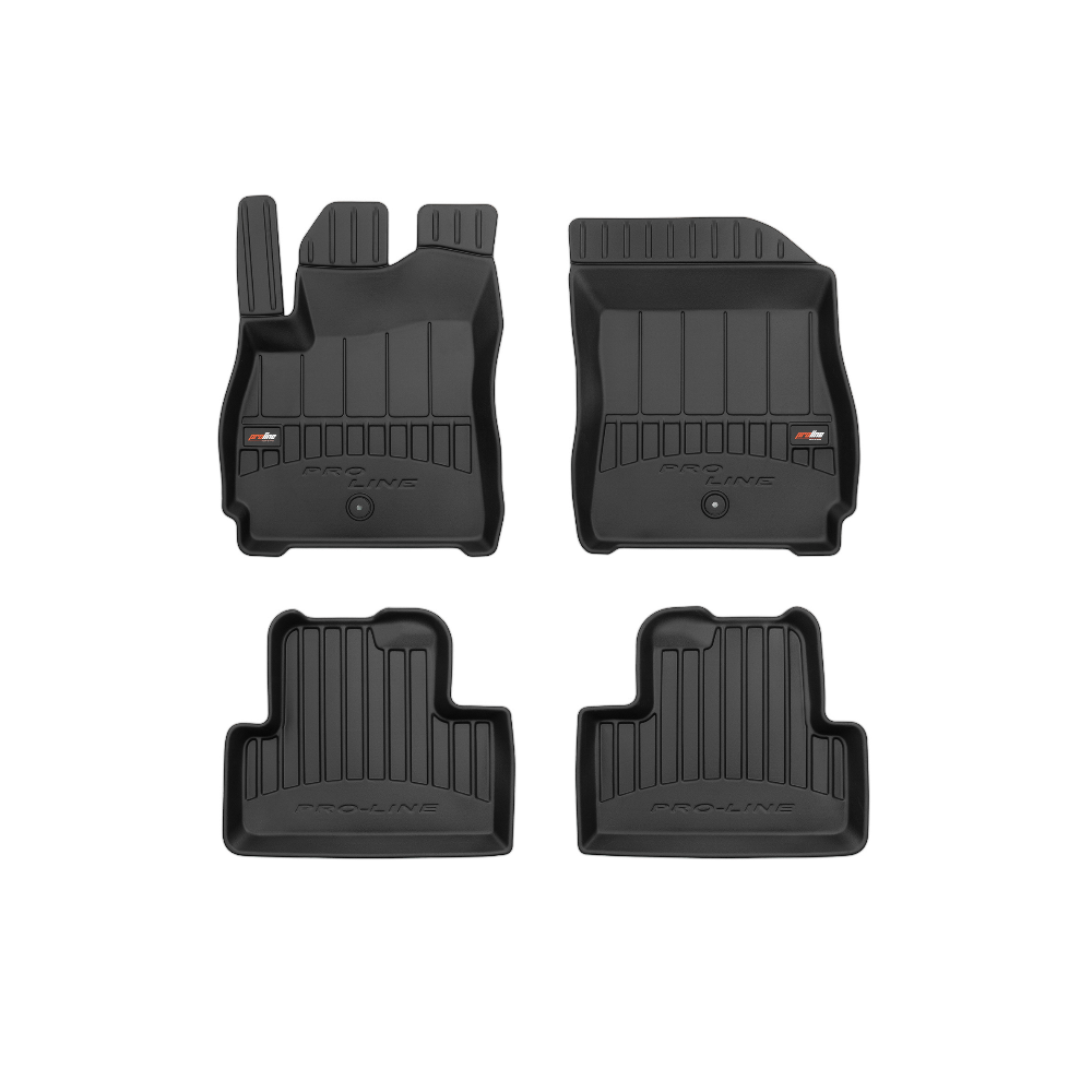 Guminiai ProLine 3D kilimėliai: (aukštos kokybės plastiko, gumos mišinys / TPE, komplektas - 4vnt., juodi, krašto aukštis 7 cm, montavimo būdas - spaustukai).AUTOMOBILIŲ KILIMĖLIAI FROGUM 3D PROLINE LUXURY• Dėl naujoviškos 3D skenavimo technologijos atitinka idealiai; • Kraštai papildomai apsaugoti – aukštis 7 cm, visada švarus automobilis; • Itin patvari medžiaga su unikalia neslystančia struktūra, atspari nešvarumams. • Išskirtinis stabilumas dėl spaustukų – lengvai montuojama spustelėjus; • Pakojo zonos apsauga – komfortas, leidžiantis nuleisti vairuotojo koją;3D ProLine aukštos kokybės guminiai kilimėliai padeda išlaikyti automobilį švarų. Modernus ir funkcionalus dizainas, ir ypač aukštas kraštas garantuoja efektyvų vandens ir purvo surinkimą ir neleidžia jiems išbėgti. Taip automobilio salonas išlieka švarus. Pagaminti iš aukštos kokybės gumos, kurioje nėra toksiškų komponentų. Bekvapis. Kilimėliai idealiai atitinka ir puikiai priglunda prie salono grindų. Guminiai kilimėliai išlaiko savo elastingumą net esant temperatūros pokyčiams. Specialus paviršius neleidžia kilimėliams slysti vairuojant, o tai daro didelę įtaką saugumui ir kelionės patogumui