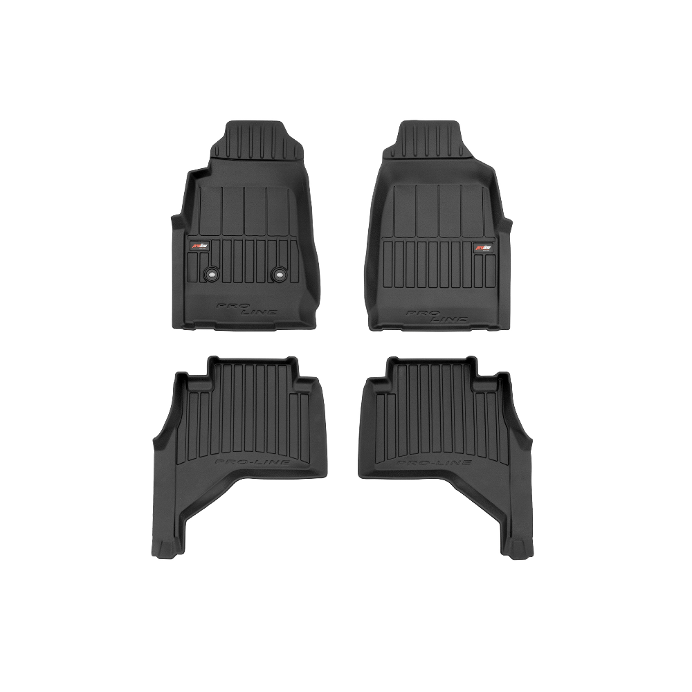 Guminiai ProLine 3D kilimėliai: (aukštos kokybės plastiko, gumos mišinys / TPE, komplektas - 4vnt., juodi, krašto aukštis 7 cm, montavimo būdas - spaustukai).AUTOMOBILIŲ KILIMĖLIAI FROGUM 3D PROLINE LUXURY• Dėl naujoviškos 3D skenavimo technologijos atitinka idealiai; • Kraštai papildomai apsaugoti – aukštis 7 cm, visada švarus automobilis; • Itin patvari medžiaga su unikalia neslystančia struktūra, atspari nešvarumams. • Išskirtinis stabilumas dėl spaustukų – lengvai montuojama spustelėjus; • Pakojo zonos apsauga – komfortas, leidžiantis nuleisti vairuotojo koją;3D ProLine aukštos kokybės guminiai kilimėliai padeda išlaikyti automobilį švarų. Modernus ir funkcionalus dizainas, ir ypač aukštas kraštas garantuoja efektyvų vandens ir purvo surinkimą ir neleidžia jiems išbėgti. Taip automobilio salonas išlieka švarus. Pagaminti iš aukštos kokybės gumos, kurioje nėra toksiškų komponentų. Bekvapis. Kilimėliai idealiai atitinka ir puikiai priglunda prie salono grindų. Guminiai kilimėliai išlaiko savo elastingumą net esant temperatūros pokyčiams. Specialus paviršius neleidžia kilimėliams slysti vairuojant, o tai daro didelę įtaką saugumui ir kelionės patogumui