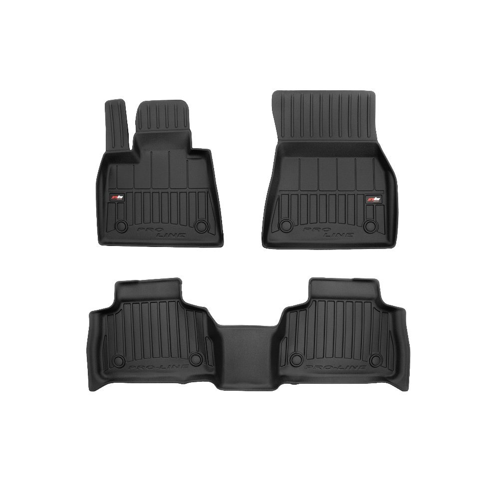 Guminiai ProLine 3D kilimėliai: (aukštos kokybės plastiko, gumos mišinys / TPE, komplektas - 3vnt., juodi, krašto aukštis 7 cm, montavimo būdas - spaustukai).AUTOMOBILIŲ KILIMĖLIAI FROGUM 3D PROLINE LUXURY• Dėl naujoviškos 3D skenavimo technologijos atitinka idealiai; • Kraštai papildomai apsaugoti – aukštis 7 cm, visada švarus automobilis; • Itin patvari medžiaga su unikalia neslystančia struktūra, atspari nešvarumams. • Išskirtinis stabilumas dėl spaustukų – lengvai montuojama spustelėjus; • Pakojo zonos apsauga – komfortas, leidžiantis nuleisti vairuotojo koją;3D ProLine aukštos kokybės guminiai kilimėliai padeda išlaikyti automobilį švarų. Modernus ir funkcionalus dizainas, ir ypač aukštas kraštas garantuoja efektyvų vandens ir purvo surinkimą ir neleidžia jiems išbėgti. Taip automobilio salonas išlieka švarus. Pagaminti iš aukštos kokybės gumos, kurioje nėra toksiškų komponentų. Bekvapis. Kilimėliai idealiai atitinka ir puikiai priglunda prie salono grindų. Guminiai kilimėliai išlaiko savo elastingumą net esant temperatūros pokyčiams. Specialus paviršius neleidžia kilimėliams slysti vairuojant, o tai daro didelę įtaką saugumui ir kelionės patogumui