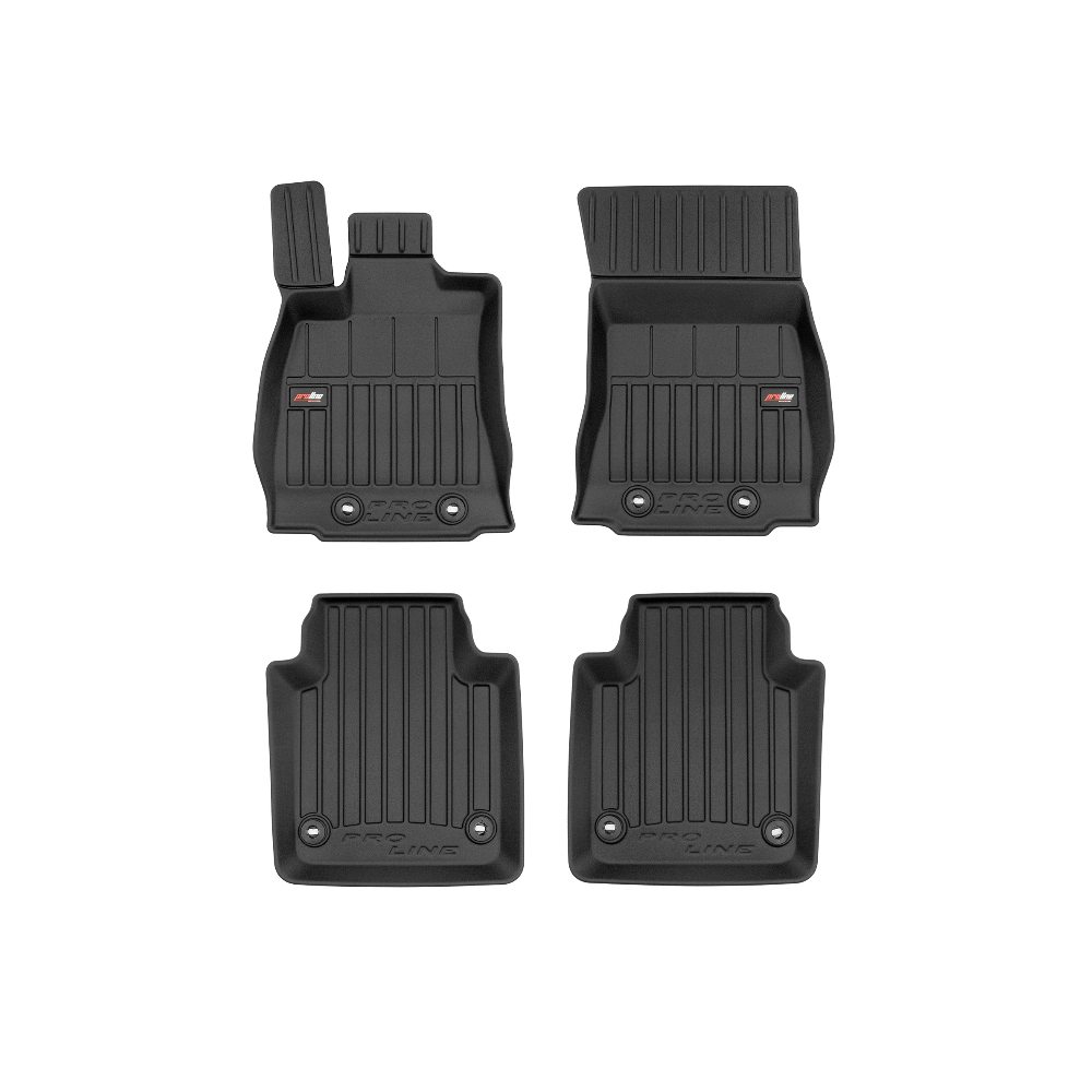 Guminiai ProLine 3D kilimėliai: (aukštos kokybės plastiko, gumos mišinys / TPE, komplektas - 4vnt., juodi, krašto aukštis 7 cm, montavimo būdas - spaustukai).AUTOMOBILIŲ KILIMĖLIAI FROGUM 3D PROLINE LUXURY• Dėl naujoviškos 3D skenavimo technologijos atitinka idealiai; • Kraštai papildomai apsaugoti – aukštis 7 cm, visada švarus automobilis; • Itin patvari medžiaga su unikalia neslystančia struktūra, atspari nešvarumams. • Išskirtinis stabilumas dėl spaustukų – lengvai montuojama spustelėjus; • Pakojo zonos apsauga – komfortas, leidžiantis nuleisti vairuotojo koją;3D ProLine aukštos kokybės guminiai kilimėliai padeda išlaikyti automobilį švarų. Modernus ir funkcionalus dizainas, ir ypač aukštas kraštas garantuoja efektyvų vandens ir purvo surinkimą ir neleidžia jiems išbėgti. Taip automobilio salonas išlieka švarus. Pagaminti iš aukštos kokybės gumos, kurioje nėra toksiškų komponentų. Bekvapis. Kilimėliai idealiai atitinka ir puikiai priglunda prie salono grindų. Guminiai kilimėliai išlaiko savo elastingumą net esant temperatūros pokyčiams. Specialus paviršius neleidžia kilimėliams slysti vairuojant, o tai daro didelę įtaką saugumui ir kelionės patogumui