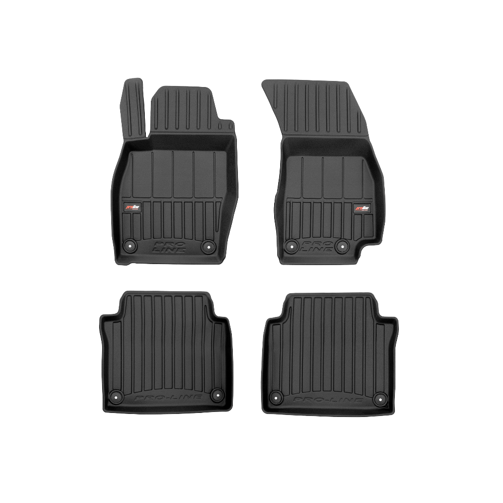 Guminiai ProLine 3D kilimėliai: (aukštos kokybės plastiko, gumos mišinys / TPE, komplektas - 4vnt., juodi, krašto aukštis 7 cm, montavimo būdas - spaustukai).AUTOMOBILIŲ KILIMĖLIAI FROGUM 3D PROLINE LUXURY• Dėl naujoviškos 3D skenavimo technologijos atitinka idealiai; • Kraštai papildomai apsaugoti – aukštis 7 cm, visada švarus automobilis; • Itin patvari medžiaga su unikalia neslystančia struktūra, atspari nešvarumams. • Išskirtinis stabilumas dėl spaustukų – lengvai montuojama spustelėjus; • Pakojo zonos apsauga – komfortas, leidžiantis nuleisti vairuotojo koją;3D ProLine aukštos kokybės guminiai kilimėliai padeda išlaikyti automobilį švarų. Modernus ir funkcionalus dizainas, ir ypač aukštas kraštas garantuoja efektyvų vandens ir purvo surinkimą ir neleidžia jiems išbėgti. Taip automobilio salonas išlieka švarus. Pagaminti iš aukštos kokybės gumos, kurioje nėra toksiškų komponentų. Bekvapis. Kilimėliai idealiai atitinka ir puikiai priglunda prie salono grindų. Guminiai kilimėliai išlaiko savo elastingumą net esant temperatūros pokyčiams. Specialus paviršius neleidžia kilimėliams slysti vairuojant, o tai daro didelę įtaką saugumui ir kelionės patogumui