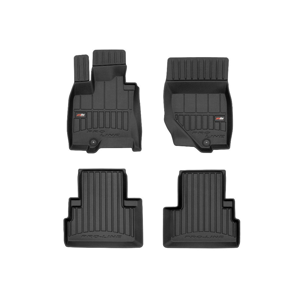 Guminiai ProLine 3D kilimėliai: (aukštos kokybės plastiko, gumos mišinys / TPE, komplektas - 4vnt., juodi, krašto aukštis 7 cm, montavimo būdas - spaustukai).AUTOMOBILIŲ KILIMĖLIAI FROGUM 3D PROLINE LUXURY• Dėl naujoviškos 3D skenavimo technologijos atitinka idealiai; • Kraštai papildomai apsaugoti – aukštis 7 cm, visada švarus automobilis; • Itin patvari medžiaga su unikalia neslystančia struktūra, atspari nešvarumams. • Išskirtinis stabilumas dėl spaustukų – lengvai montuojama spustelėjus; • Pakojo zonos apsauga – komfortas, leidžiantis nuleisti vairuotojo koją;3D ProLine aukštos kokybės guminiai kilimėliai padeda išlaikyti automobilį švarų. Modernus ir funkcionalus dizainas, ir ypač aukštas kraštas garantuoja efektyvų vandens ir purvo surinkimą ir neleidžia jiems išbėgti. Taip automobilio salonas išlieka švarus. Pagaminti iš aukštos kokybės gumos, kurioje nėra toksiškų komponentų. Bekvapis. Kilimėliai idealiai atitinka ir puikiai priglunda prie salono grindų. Guminiai kilimėliai išlaiko savo elastingumą net esant temperatūros pokyčiams. Specialus paviršius neleidžia kilimėliams slysti vairuojant, o tai daro didelę įtaką saugumui ir kelionės patogumui