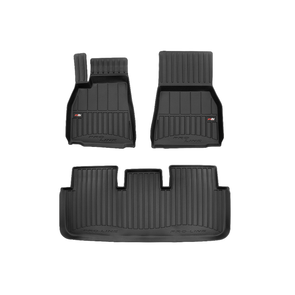 Guminiai ProLine 3D kilimėliai: (aukštos kokybės plastiko, gumos mišinys / TPE, komplektas - 3vnt., juodi, krašto aukštis 7 cm, montavimo būdas - spaustukai).AUTOMOBILIŲ KILIMĖLIAI FROGUM 3D PROLINE LUXURY• Dėl naujoviškos 3D skenavimo technologijos atitinka idealiai; • Kraštai papildomai apsaugoti – aukštis 7 cm, visada švarus automobilis; • Itin patvari medžiaga su unikalia neslystančia struktūra, atspari nešvarumams. • Išskirtinis stabilumas dėl spaustukų – lengvai montuojama spustelėjus; • Pakojo zonos apsauga – komfortas, leidžiantis nuleisti vairuotojo koją;3D ProLine aukštos kokybės guminiai kilimėliai padeda išlaikyti automobilį švarų. Modernus ir funkcionalus dizainas, ir ypač aukštas kraštas garantuoja efektyvų vandens ir purvo surinkimą ir neleidžia jiems išbėgti. Taip automobilio salonas išlieka švarus. Pagaminti iš aukštos kokybės gumos, kurioje nėra toksiškų komponentų. Bekvapis. Kilimėliai idealiai atitinka ir puikiai priglunda prie salono grindų. Guminiai kilimėliai išlaiko savo elastingumą net esant temperatūros pokyčiams. Specialus paviršius neleidžia kilimėliams slysti vairuojant, o tai daro didelę įtaką saugumui ir kelionės patogumui
