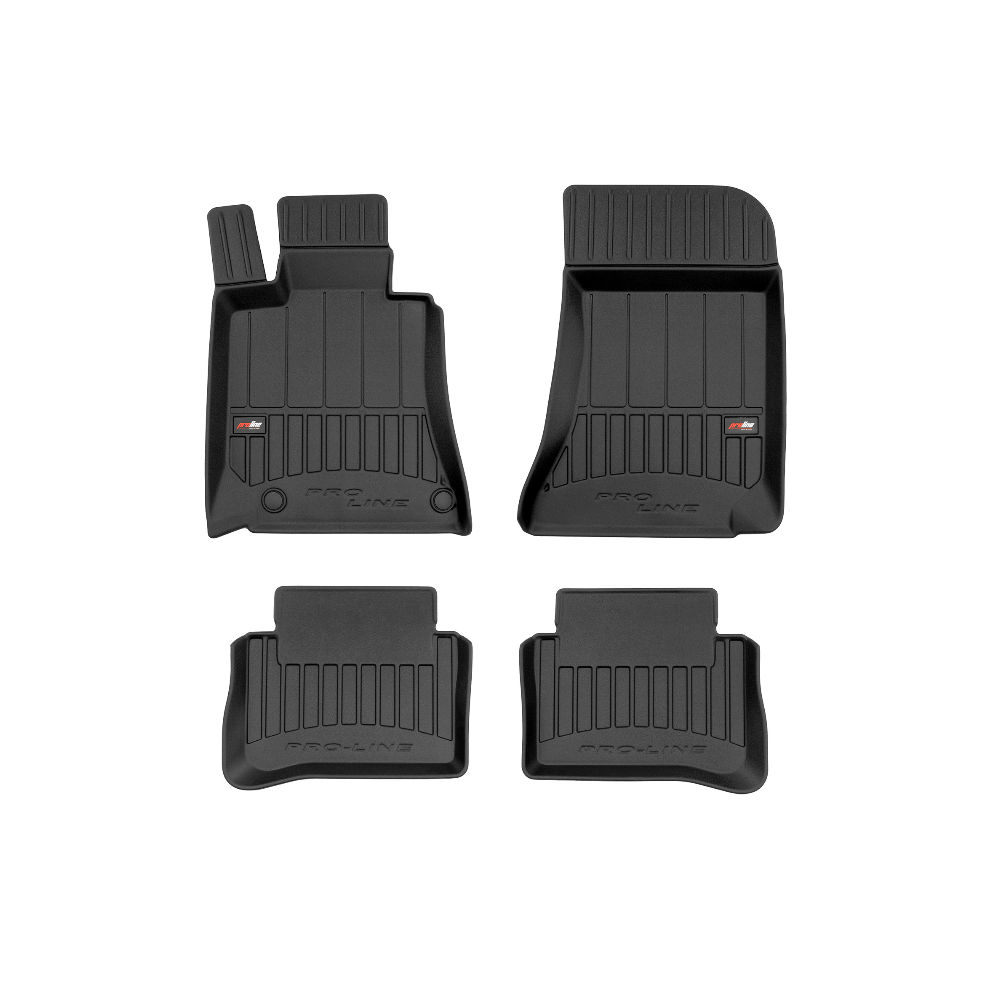 Guminiai ProLine 3D kilimėliai: (aukštos kokybės plastiko, gumos mišinys / TPE, komplektas - 4vnt., juodi, krašto aukštis 7 cm, montavimo būdas - spaustukai).AUTOMOBILIŲ KILIMĖLIAI FROGUM 3D PROLINE LUXURY• Dėl naujoviškos 3D skenavimo technologijos atitinka idealiai; • Kraštai papildomai apsaugoti – aukštis 7 cm, visada švarus automobilis; • Itin patvari medžiaga su unikalia neslystančia struktūra, atspari nešvarumams. • Išskirtinis stabilumas dėl spaustukų – lengvai montuojama spustelėjus; • Pakojo zonos apsauga – komfortas, leidžiantis nuleisti vairuotojo koją;3D ProLine aukštos kokybės guminiai kilimėliai padeda išlaikyti automobilį švarų. Modernus ir funkcionalus dizainas, ir ypač aukštas kraštas garantuoja efektyvų vandens ir purvo surinkimą ir neleidžia jiems išbėgti. Taip automobilio salonas išlieka švarus. Pagaminti iš aukštos kokybės gumos, kurioje nėra toksiškų komponentų. Bekvapis. Kilimėliai idealiai atitinka ir puikiai priglunda prie salono grindų. Guminiai kilimėliai išlaiko savo elastingumą net esant temperatūros pokyčiams. Specialus paviršius neleidžia kilimėliams slysti vairuojant, o tai daro didelę įtaką saugumui ir kelionės patogumui