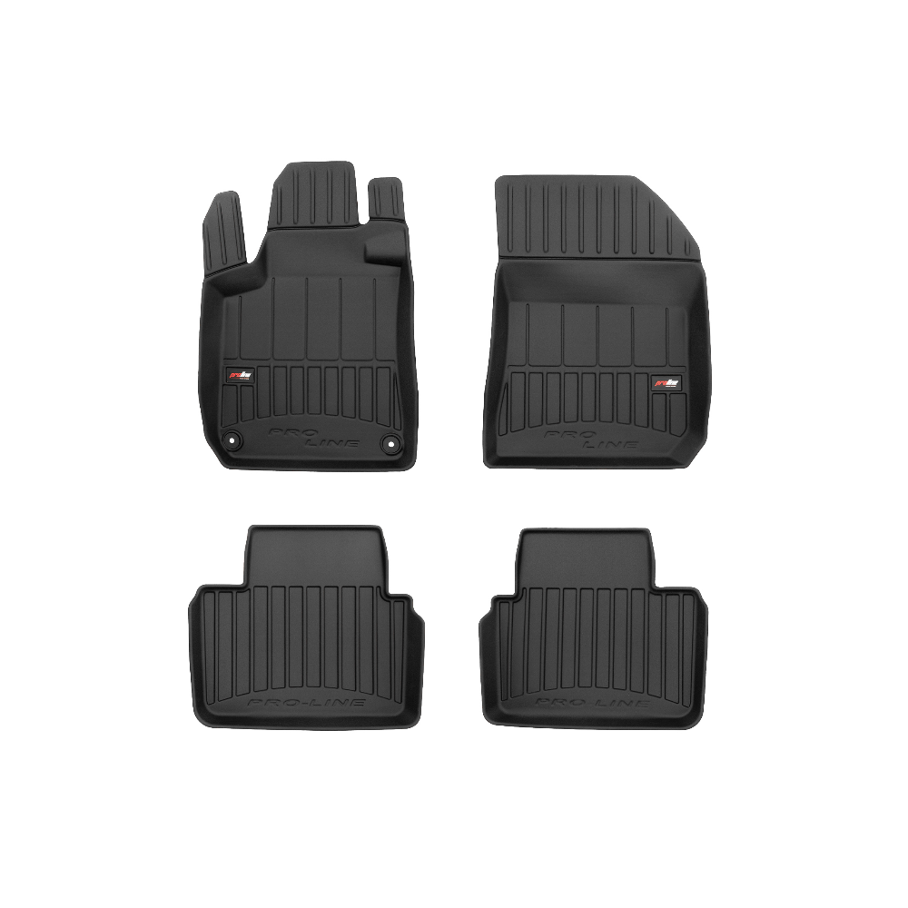 Guminiai ProLine 3D kilimėliai: (aukštos kokybės plastiko, gumos mišinys / TPE, komplektas - 4vnt., juodi, krašto aukštis 7 cm, montavimo būdas - spaustukai).AUTOMOBILIŲ KILIMĖLIAI FROGUM 3D PROLINE LUXURY• Dėl naujoviškos 3D skenavimo technologijos atitinka idealiai; • Kraštai papildomai apsaugoti – aukštis 7 cm, visada švarus automobilis; • Itin patvari medžiaga su unikalia neslystančia struktūra, atspari nešvarumams. • Išskirtinis stabilumas dėl spaustukų – lengvai montuojama spustelėjus; • Pakojo zonos apsauga – komfortas, leidžiantis nuleisti vairuotojo koją;3D ProLine aukštos kokybės guminiai kilimėliai padeda išlaikyti automobilį švarų. Modernus ir funkcionalus dizainas, ir ypač aukštas kraštas garantuoja efektyvų vandens ir purvo surinkimą ir neleidžia jiems išbėgti. Taip automobilio salonas išlieka švarus. Pagaminti iš aukštos kokybės gumos, kurioje nėra toksiškų komponentų. Bekvapis. Kilimėliai idealiai atitinka ir puikiai priglunda prie salono grindų. Guminiai kilimėliai išlaiko savo elastingumą net esant temperatūros pokyčiams. Specialus paviršius neleidžia kilimėliams slysti vairuojant, o tai daro didelę įtaką saugumui ir kelionės patogumui