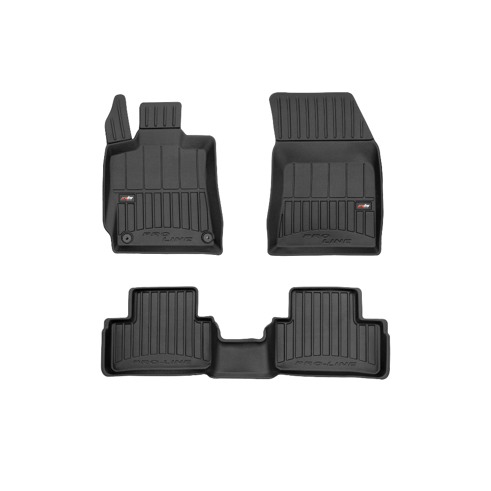 Guminiai ProLine 3D kilimėliai: (aukštos kokybės plastiko, gumos mišinys / TPE, komplektas - 3vnt., juodi, krašto aukštis 7 cm, montavimo būdas - spaustukai).AUTOMOBILIŲ KILIMĖLIAI FROGUM 3D PROLINE LUXURY• Dėl naujoviškos 3D skenavimo technologijos atitinka idealiai; • Kraštai papildomai apsaugoti – aukštis 7 cm, visada švarus automobilis; • Itin patvari medžiaga su unikalia neslystančia struktūra, atspari nešvarumams. • Išskirtinis stabilumas dėl spaustukų – lengvai montuojama spustelėjus; • Pakojo zonos apsauga – komfortas, leidžiantis nuleisti vairuotojo koją;3D ProLine aukštos kokybės guminiai kilimėliai padeda išlaikyti automobilį švarų. Modernus ir funkcionalus dizainas, ir ypač aukštas kraštas garantuoja efektyvų vandens ir purvo surinkimą ir neleidžia jiems išbėgti. Taip automobilio salonas išlieka švarus. Pagaminti iš aukštos kokybės gumos, kurioje nėra toksiškų komponentų. Bekvapis. Kilimėliai idealiai atitinka ir puikiai priglunda prie salono grindų. Guminiai kilimėliai išlaiko savo elastingumą net esant temperatūros pokyčiams. Specialus paviršius neleidžia kilimėliams slysti vairuojant, o tai daro didelę įtaką saugumui ir kelionės patogumui.