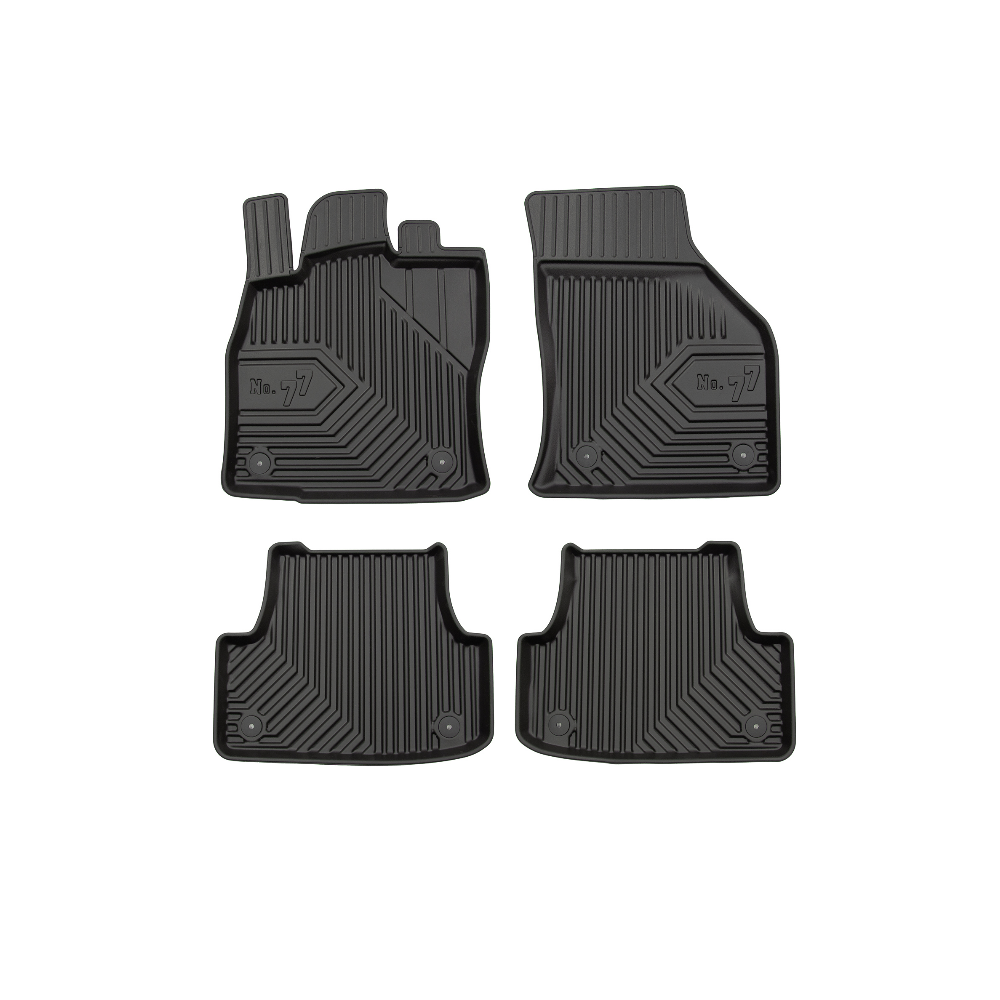 Guminiai Premium 77 kilimėliai: (aukštos kokybės plastiko, gumos mišinys / TPE, komplektas - 4vnt., juodi, krašto aukštis 4 cm, montavimo būdas - spaustukai).AUTOMOBILIŲ KILIMĖLIAI FROGUM 77 PREMIUM• Dėl naujoviškos 3D skenavimo technologijos atitinka idealiai; • Krašto aukštis - 4 cm suteikia didesnę apsaugą nuo nešvarumų • Modernus ir funkcionalus dizainas, išlaikantis nešvarumus kilimėlio viduje • Neslystantys spacialūs spaustukai, lengva montuoti; • Speciali apsauga, leidžianti nuleisti vairuotojo koją;Aukšto lygio apsauga jūsų automobiliui, kilimėliai idealiai atitinka ir puikiai priglunda prie salono grindų. Modernus ir funkcionalus dizainas, bei aukštas kraštas garantuoja efektyvų vandens ir purvo surinkimą ir neleidžia jam nutekėti. Taip automobilio salonas išlieka švarus. Pagaminti iš aukštos kokybės gumos, kurioje nėra toksiškų komponentų. Bekvapis. Kilimėliai turi spaustukus, todėl jį lengva pritvirtinti prie grindų. Guminiai kilimėliai išlaiko savo elastingumą net esant temperatūros pokyčiams. Specialus paviršius neleidžia kilimėliams slysti vairuojant, todėl labai paveikia saugumą ir kelionės komfortą.