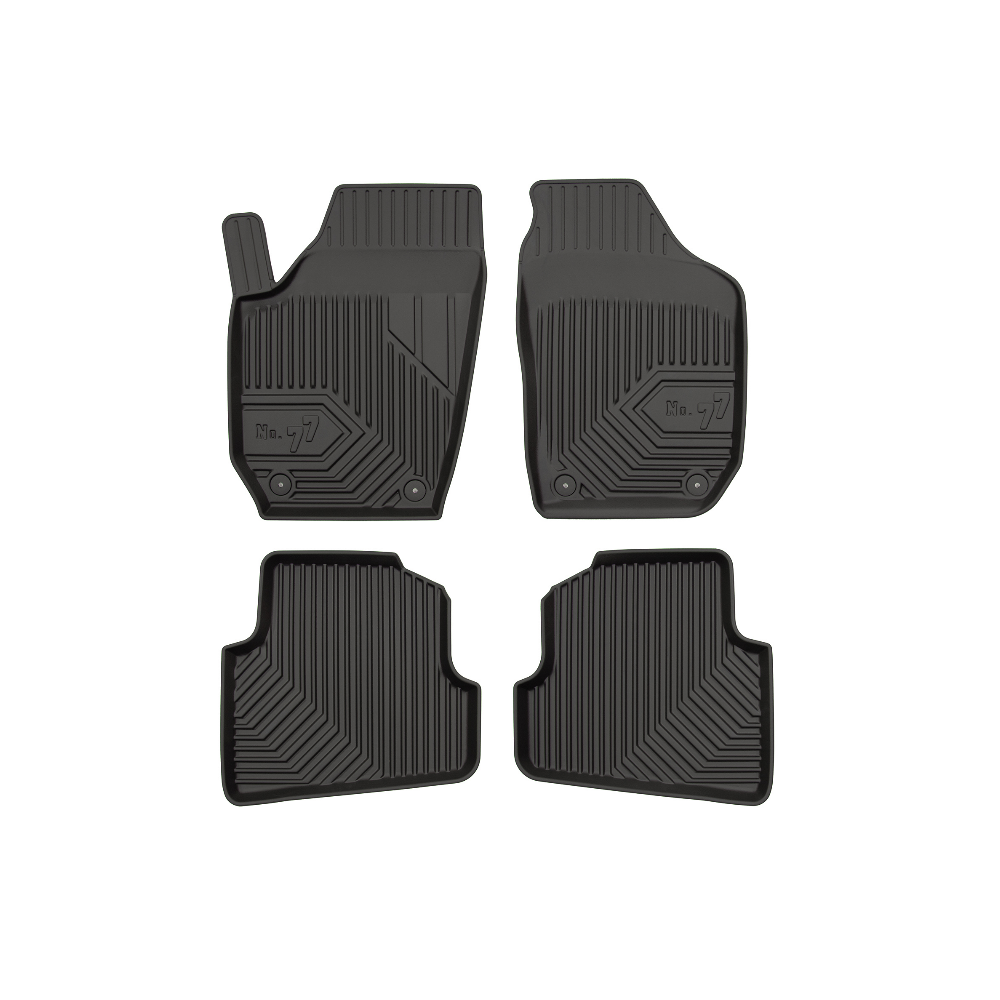 Guminiai Premium 77 kilimėliai: (aukštos kokybės plastiko, gumos mišinys / TPE, komplektas - 4vnt., juodi, krašto aukštis 4 cm, montavimo būdas - spaustukai).AUTOMOBILIŲ KILIMĖLIAI FROGUM 77 PREMIUM• Dėl naujoviškos 3D skenavimo technologijos atitinka idealiai; • Krašto aukštis - 4 cm suteikia didesnę apsaugą nuo nešvarumų • Modernus ir funkcionalus dizainas, išlaikantis nešvarumus kilimėlio viduje • Neslystantys spacialūs spaustukai, lengva montuoti; • Speciali apsauga, leidžianti nuleisti vairuotojo koją;Aukšto lygio apsauga jūsų automobiliui, kilimėliai idealiai atitinka ir puikiai priglunda prie salono grindų. Modernus ir funkcionalus dizainas, bei aukštas kraštas garantuoja efektyvų vandens ir purvo surinkimą ir neleidžia jam nutekėti. Taip automobilio salonas išlieka švarus. Pagaminti iš aukštos kokybės gumos, kurioje nėra toksiškų komponentų. Bekvapis. Kilimėliai turi spaustukus, todėl jį lengva pritvirtinti prie grindų. Guminiai kilimėliai išlaiko savo elastingumą net esant temperatūros pokyčiams. Specialus paviršius neleidžia kilimėliams slysti vairuojant, todėl labai paveikia saugumą ir kelionės komfortą.