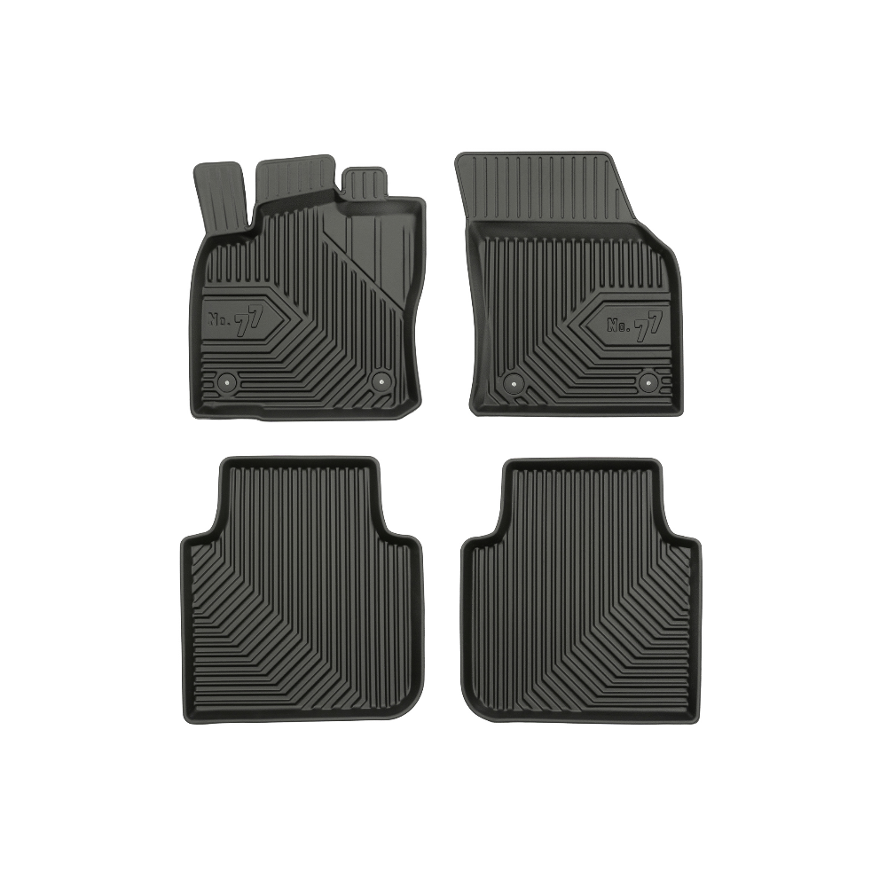 Guminiai Premium 77 kilimėliai: (aukštos kokybės plastiko, gumos mišinys / TPE, komplektas - 4vnt., juodi, krašto aukštis 4 cm, montavimo būdas - spaustukai).AUTOMOBILIŲ KILIMĖLIAI FROGUM 77 PREMIUM• Dėl naujoviškos 3D skenavimo technologijos atitinka idealiai; • Krašto aukštis - 4 cm suteikia didesnę apsaugą nuo nešvarumų • Modernus ir funkcionalus dizainas, išlaikantis nešvarumus kilimėlio viduje • Neslystantys spacialūs spaustukai, lengva montuoti; • Speciali apsauga, leidžianti nuleisti vairuotojo koją;Aukšto lygio apsauga jūsų automobiliui, kilimėliai idealiai atitinka ir puikiai priglunda prie salono grindų. Modernus ir funkcionalus dizainas, bei aukštas kraštas garantuoja efektyvų vandens ir purvo surinkimą ir neleidžia jam nutekėti. Taip automobilio salonas išlieka švarus. Pagaminti iš aukštos kokybės gumos, kurioje nėra toksiškų komponentų. Bekvapis. Kilimėliai turi spaustukus, todėl jį lengva pritvirtinti prie grindų. Guminiai kilimėliai išlaiko savo elastingumą net esant temperatūros pokyčiams. Specialus paviršius neleidžia kilimėliams slysti vairuojant, todėl labai paveikia saugumą ir kelionės komfortą.