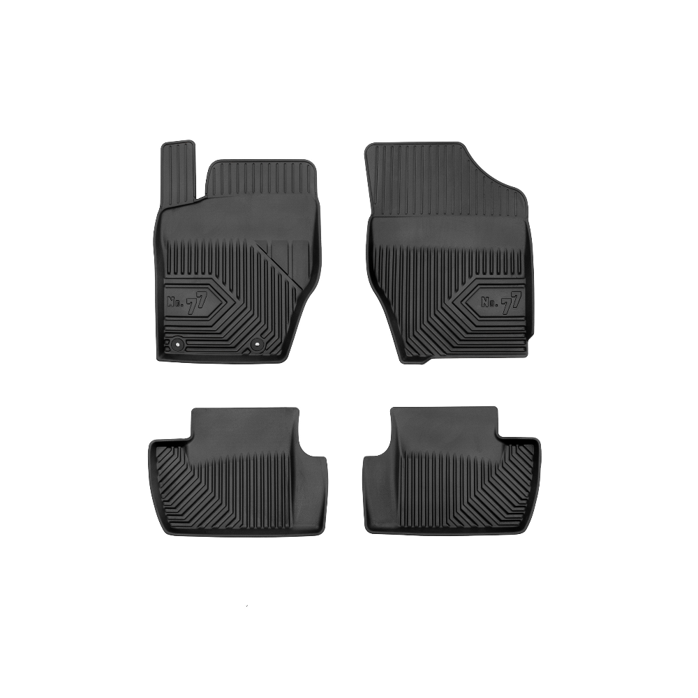 Guminiai Premium 77 kilimėliai: (aukštos kokybės plastiko, gumos mišinys / TPE, komplektas - 4vnt., juodi, krašto aukštis 4 cm, montavimo būdas - spaustukai).AUTOMOBILIŲ KILIMĖLIAI FROGUM 77 PREMIUM• Dėl naujoviškos 3D skenavimo technologijos atitinka idealiai; • Krašto aukštis - 4 cm suteikia didesnę apsaugą nuo nešvarumų • Modernus ir funkcionalus dizainas, išlaikantis nešvarumus kilimėlio viduje • Neslystantys spacialūs spaustukai, lengva montuoti; • Speciali apsauga, leidžianti nuleisti vairuotojo koją;Aukšto lygio apsauga jūsų automobiliui, kilimėliai idealiai atitinka ir puikiai priglunda prie salono grindų. Modernus ir funkcionalus dizainas, bei aukštas kraštas garantuoja efektyvų vandens ir purvo surinkimą ir neleidžia jam nutekėti. Taip automobilio salonas išlieka švarus. Pagaminti iš aukštos kokybės gumos, kurioje nėra toksiškų komponentų. Bekvapis. Kilimėliai turi spaustukus, todėl jį lengva pritvirtinti prie grindų. Guminiai kilimėliai išlaiko savo elastingumą net esant temperatūros pokyčiams. Specialus paviršius neleidžia kilimėliams slysti vairuojant, todėl labai paveikia saugumą ir kelionės komfortą.