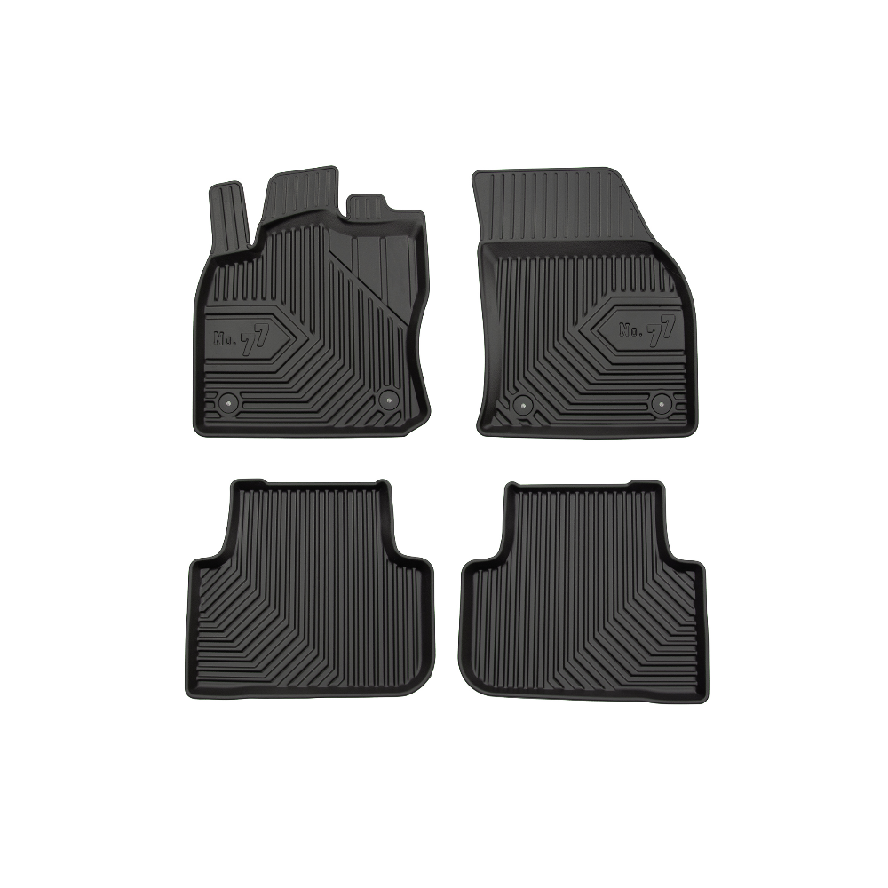 Guminiai Premium 77 kilimėliai: (aukštos kokybės plastiko, gumos mišinys / TPE, komplektas - 4vnt., juodi, krašto aukštis 4 cm, montavimo būdas - spaustukai).AUTOMOBILIŲ KILIMĖLIAI FROGUM 77 PREMIUM• Dėl naujoviškos 3D skenavimo technologijos atitinka idealiai; • Krašto aukštis - 4 cm suteikia didesnę apsaugą nuo nešvarumų • Modernus ir funkcionalus dizainas, išlaikantis nešvarumus kilimėlio viduje • Neslystantys spacialūs spaustukai, lengva montuoti; • Speciali apsauga, leidžianti nuleisti vairuotojo koją;Aukšto lygio apsauga jūsų automobiliui, kilimėliai idealiai atitinka ir puikiai priglunda prie salono grindų. Modernus ir funkcionalus dizainas, bei aukštas kraštas garantuoja efektyvų vandens ir purvo surinkimą ir neleidžia jam nutekėti. Taip automobilio salonas išlieka švarus. Pagaminti iš aukštos kokybės gumos, kurioje nėra toksiškų komponentų. Bekvapis. Kilimėliai turi spaustukus, todėl jį lengva pritvirtinti prie grindų. Guminiai kilimėliai išlaiko savo elastingumą net esant temperatūros pokyčiams. Specialus paviršius neleidžia kilimėliams slysti vairuojant, todėl labai paveikia saugumą ir kelionės komfortą.