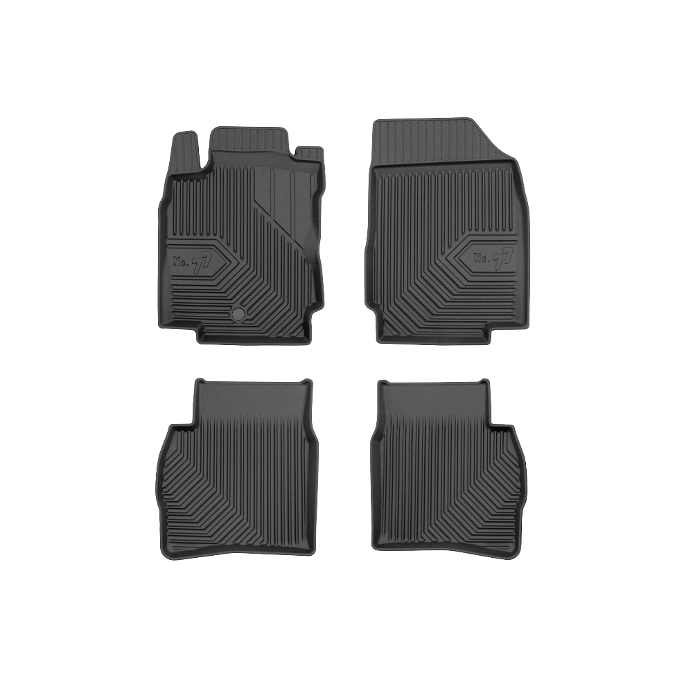 Guminiai Premium 77 kilimėliai: (aukštos kokybės plastiko, gumos mišinys / TPE, komplektas - 4vnt., juodi, krašto aukštis 4 cm, montavimo būdas - spaustukai).AUTOMOBILIŲ KILIMĖLIAI FROGUM 77 PREMIUM• Dėl naujoviškos 3D skenavimo technologijos atitinka idealiai; • Krašto aukštis - 4 cm suteikia didesnę apsaugą nuo nešvarumų • Modernus ir funkcionalus dizainas, išlaikantis nešvarumus kilimėlio viduje • Neslystantys spacialūs spaustukai, lengva montuoti; • Speciali apsauga, leidžianti nuleisti vairuotojo koją;Aukšto lygio apsauga jūsų automobiliui, kilimėliai idealiai atitinka ir puikiai priglunda prie salono grindų. Modernus ir funkcionalus dizainas, bei aukštas kraštas garantuoja efektyvų vandens ir purvo surinkimą ir neleidžia jam nutekėti. Taip automobilio salonas išlieka švarus. Pagaminti iš aukštos kokybės gumos, kurioje nėra toksiškų komponentų. Bekvapis. Kilimėliai turi spaustukus, todėl jį lengva pritvirtinti prie grindų. Guminiai kilimėliai išlaiko savo elastingumą net esant temperatūros pokyčiams. Specialus paviršius neleidžia kilimėliams slysti vairuojant, todėl labai paveikia saugumą ir kelionės komfortą.