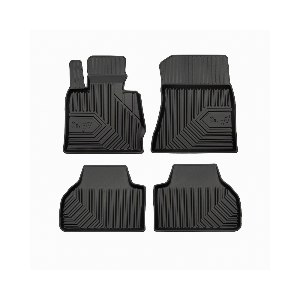 Guminiai Premium 77 kilimėliai: (aukštos kokybės plastiko, gumos mišinys / TPE, komplektas - 4vnt., juodi, krašto aukštis 4 cm, montavimo būdas - spaustukai).AUTOMOBILIŲ KILIMĖLIAI FROGUM 77 PREMIUM• Dėl naujoviškos 3D skenavimo technologijos atitinka idealiai; • Krašto aukštis - 4 cm suteikia didesnę apsaugą nuo nešvarumų • Modernus ir funkcionalus dizainas, išlaikantis nešvarumus kilimėlio viduje • Neslystantys spacialūs spaustukai, lengva montuoti; • Speciali apsauga, leidžianti nuleisti vairuotojo koją;Aukšto lygio apsauga jūsų automobiliui, kilimėliai idealiai atitinka ir puikiai priglunda prie salono grindų. Modernus ir funkcionalus dizainas, bei aukštas kraštas garantuoja efektyvų vandens ir purvo surinkimą ir neleidžia jam nutekėti. Taip automobilio salonas išlieka švarus. Pagaminti iš aukštos kokybės gumos, kurioje nėra toksiškų komponentų. Bekvapis. Kilimėliai turi spaustukus, todėl jį lengva pritvirtinti prie grindų. Guminiai kilimėliai išlaiko savo elastingumą net esant temperatūros pokyčiams. Specialus paviršius neleidžia kilimėliams slysti vairuojant, todėl labai paveikia saugumą ir kelionės komfortą.