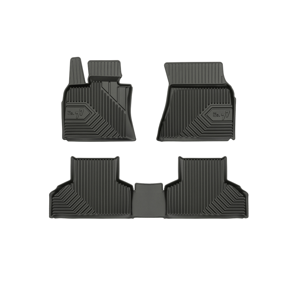 Guminiai Premium 77 kilimėliai: (aukštos kokybės plastiko, gumos mišinys / TPE, komplektas - 3vnt., juodi, krašto aukštis 4 cm, montavimo būdas - spaustukai).AUTOMOBILIŲ KILIMĖLIAI FROGUM 77 PREMIUM• Dėl naujoviškos 3D skenavimo technologijos atitinka idealiai; • Krašto aukštis - 4 cm suteikia didesnę apsaugą nuo nešvarumų • Modernus ir funkcionalus dizainas, išlaikantis nešvarumus kilimėlio viduje • Neslystantys spacialūs spaustukai, lengva montuoti; • Speciali apsauga, leidžianti nuleisti vairuotojo koją;Aukšto lygio apsauga jūsų automobiliui, kilimėliai idealiai atitinka ir puikiai priglunda prie salono grindų. Modernus ir funkcionalus dizainas, bei aukštas kraštas garantuoja efektyvų vandens ir purvo surinkimą ir neleidžia jam nutekėti. Taip automobilio salonas išlieka švarus. Pagaminti iš aukštos kokybės gumos, kurioje nėra toksiškų komponentų. Bekvapis. Kilimėliai turi spaustukus, todėl jį lengva pritvirtinti prie grindų. Guminiai kilimėliai išlaiko savo elastingumą net esant temperatūros pokyčiams. Specialus paviršius neleidžia kilimėliams slysti vairuojant, todėl labai paveikia saugumą ir kelionės komfortą.