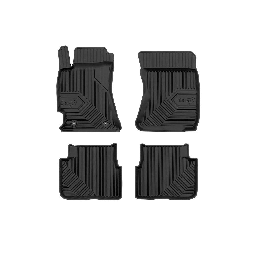 Guminiai Premium 77 kilimėliai: (aukštos kokybės plastiko, gumos mišinys / TPE, komplektas - 4vnt., juodi, krašto aukštis 4 cm, montavimo būdas - spaustukai).AUTOMOBILIŲ KILIMĖLIAI FROGUM 77 PREMIUM• Dėl naujoviškos 3D skenavimo technologijos atitinka idealiai; • Krašto aukštis - 4 cm suteikia didesnę apsaugą nuo nešvarumų • Modernus ir funkcionalus dizainas, išlaikantis nešvarumus kilimėlio viduje • Neslystantys spacialūs spaustukai, lengva montuoti; • Speciali apsauga, leidžianti nuleisti vairuotojo koją;Aukšto lygio apsauga jūsų automobiliui, kilimėliai idealiai atitinka ir puikiai priglunda prie salono grindų. Modernus ir funkcionalus dizainas, bei aukštas kraštas garantuoja efektyvų vandens ir purvo surinkimą ir neleidžia jam nutekėti. Taip automobilio salonas išlieka švarus. Pagaminti iš aukštos kokybės gumos, kurioje nėra toksiškų komponentų. Bekvapis. Kilimėliai turi spaustukus, todėl jį lengva pritvirtinti prie grindų. Guminiai kilimėliai išlaiko savo elastingumą net esant temperatūros pokyčiams. Specialus paviršius neleidžia kilimėliams slysti vairuojant, todėl labai paveikia saugumą ir kelionės komfortą.