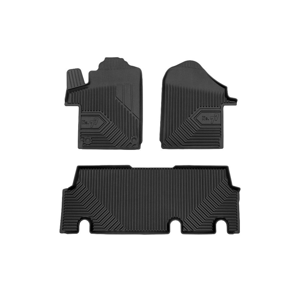 Guminiai Premium 77 kilimėliai: (aukštos kokybės plastiko, gumos mišinys / TPE, komplektas - 3vnt., juodi, krašto aukštis 4 cm, montavimo būdas - spaustukai).AUTOMOBILIŲ KILIMĖLIAI FROGUM 77 PREMIUM• Dėl naujoviškos 3D skenavimo technologijos atitinka idealiai; • Krašto aukštis - 4 cm suteikia didesnę apsaugą nuo nešvarumų • Modernus ir funkcionalus dizainas, išlaikantis nešvarumus kilimėlio viduje • Neslystantys spacialūs spaustukai, lengva montuoti; • Speciali apsauga, leidžianti nuleisti vairuotojo koją;Aukšto lygio apsauga jūsų automobiliui, kilimėliai idealiai atitinka ir puikiai priglunda prie salono grindų. Modernus ir funkcionalus dizainas, bei aukštas kraštas garantuoja efektyvų vandens ir purvo surinkimą ir neleidžia jam nutekėti. Taip automobilio salonas išlieka švarus. Pagaminti iš aukštos kokybės gumos, kurioje nėra toksiškų komponentų. Bekvapis. Kilimėliai turi spaustukus, todėl jį lengva pritvirtinti prie grindų. Guminiai kilimėliai išlaiko savo elastingumą net esant temperatūros pokyčiams. Specialus paviršius neleidžia kilimėliams slysti vairuojant, todėl labai paveikia saugumą ir kelionės komfortą.