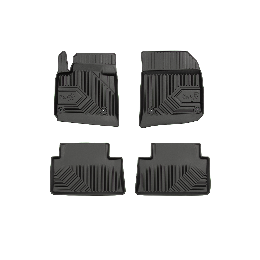 Guminiai Premium 77 kilimėliai: (aukštos kokybės plastiko, gumos mišinys / TPE, komplektas - 4vnt., juodi, krašto aukštis 4 cm, montavimo būdas - spaustukai).AUTOMOBILIŲ KILIMĖLIAI FROGUM 77 PREMIUM• Dėl naujoviškos 3D skenavimo technologijos atitinka idealiai; • Krašto aukštis - 4 cm suteikia didesnę apsaugą nuo nešvarumų • Modernus ir funkcionalus dizainas, išlaikantis nešvarumus kilimėlio viduje • Neslystantys spacialūs spaustukai, lengva montuoti; • Speciali apsauga, leidžianti nuleisti vairuotojo koją;Aukšto lygio apsauga jūsų automobiliui, kilimėliai idealiai atitinka ir puikiai priglunda prie salono grindų. Modernus ir funkcionalus dizainas, bei aukštas kraštas garantuoja efektyvų vandens ir purvo surinkimą ir neleidžia jam nutekėti. Taip automobilio salonas išlieka švarus. Pagaminti iš aukštos kokybės gumos, kurioje nėra toksiškų komponentų. Bekvapis. Kilimėliai turi spaustukus, todėl jį lengva pritvirtinti prie grindų. Guminiai kilimėliai išlaiko savo elastingumą net esant temperatūros pokyčiams. Specialus paviršius neleidžia kilimėliams slysti vairuojant, todėl labai paveikia saugumą ir kelionės komfortą.