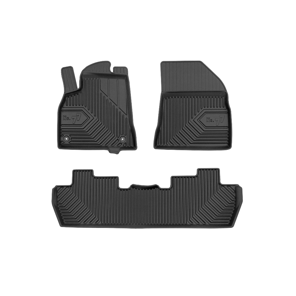 Guminiai Premium 77 kilimėliai: (aukštos kokybės plastiko, gumos mišinys / TPE, komplektas - 3vnt., juodi, krašto aukštis 4 cm, montavimo būdas - spaustukai).AUTOMOBILIŲ KILIMĖLIAI FROGUM 77 PREMIUM• Dėl naujoviškos 3D skenavimo technologijos atitinka idealiai; • Krašto aukštis - 4 cm suteikia didesnę apsaugą nuo nešvarumų • Modernus ir funkcionalus dizainas, išlaikantis nešvarumus kilimėlio viduje • Neslystantys spacialūs spaustukai, lengva montuoti; • Speciali apsauga, leidžianti nuleisti vairuotojo koją;Aukšto lygio apsauga jūsų automobiliui, kilimėliai idealiai atitinka ir puikiai priglunda prie salono grindų. Modernus ir funkcionalus dizainas, bei aukštas kraštas garantuoja efektyvų vandens ir purvo surinkimą ir neleidžia jam nutekėti. Taip automobilio salonas išlieka švarus. Pagaminti iš aukštos kokybės gumos, kurioje nėra toksiškų komponentų. Bekvapis. Kilimėliai turi spaustukus, todėl jį lengva pritvirtinti prie grindų. Guminiai kilimėliai išlaiko savo elastingumą net esant temperatūros pokyčiams. Specialus paviršius neleidžia kilimėliams slysti vairuojant, todėl labai paveikia saugumą ir kelionės komfortą.