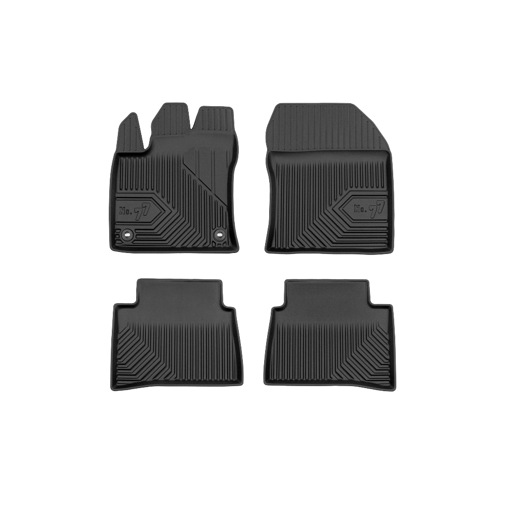 Guminiai Premium 77 kilimėliai: (aukštos kokybės plastiko, gumos mišinys / TPE, komplektas - 4vnt., juodi, krašto aukštis 4 cm, montavimo būdas - spaustukai).AUTOMOBILIŲ KILIMĖLIAI FROGUM 77 PREMIUM• Dėl naujoviškos 3D skenavimo technologijos atitinka idealiai; • Krašto aukštis - 4 cm suteikia didesnę apsaugą nuo nešvarumų • Modernus ir funkcionalus dizainas, išlaikantis nešvarumus kilimėlio viduje • Neslystantys spacialūs spaustukai, lengva montuoti; • Speciali apsauga, leidžianti nuleisti vairuotojo koją;Aukšto lygio apsauga jūsų automobiliui, kilimėliai idealiai atitinka ir puikiai priglunda prie salono grindų. Modernus ir funkcionalus dizainas, bei aukštas kraštas garantuoja efektyvų vandens ir purvo surinkimą ir neleidžia jam nutekėti. Taip automobilio salonas išlieka švarus. Pagaminti iš aukštos kokybės gumos, kurioje nėra toksiškų komponentų. Bekvapis. Kilimėliai turi spaustukus, todėl jį lengva pritvirtinti prie grindų. Guminiai kilimėliai išlaiko savo elastingumą net esant temperatūros pokyčiams. Specialus paviršius neleidžia kilimėliams slysti vairuojant, todėl labai paveikia saugumą ir kelionės komfortą.