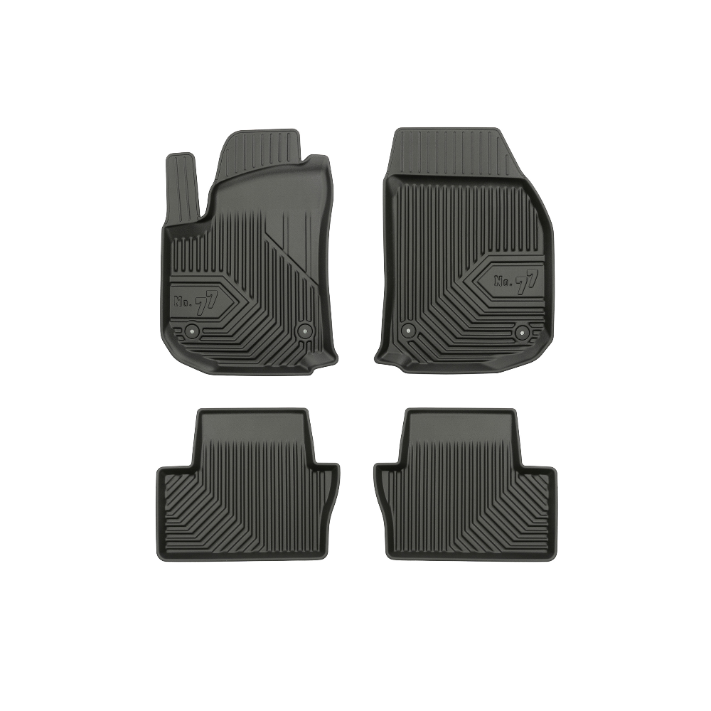 Guminiai Premium 77 kilimėliai: (aukštos kokybės plastiko, gumos mišinys / TPE, komplektas - 4vnt., juodi, krašto aukštis 4 cm, montavimo būdas - spaustukai).AUTOMOBILIŲ KILIMĖLIAI FROGUM 77 PREMIUM• Dėl naujoviškos 3D skenavimo technologijos atitinka idealiai; • Krašto aukštis - 4 cm suteikia didesnę apsaugą nuo nešvarumų • Modernus ir funkcionalus dizainas, išlaikantis nešvarumus kilimėlio viduje • Neslystantys spacialūs spaustukai, lengva montuoti; • Speciali apsauga, leidžianti nuleisti vairuotojo koją;Aukšto lygio apsauga jūsų automobiliui, kilimėliai idealiai atitinka ir puikiai priglunda prie salono grindų. Modernus ir funkcionalus dizainas, bei aukštas kraštas garantuoja efektyvų vandens ir purvo surinkimą ir neleidžia jam nutekėti. Taip automobilio salonas išlieka švarus. Pagaminti iš aukštos kokybės gumos, kurioje nėra toksiškų komponentų. Bekvapis. Kilimėliai turi spaustukus, todėl jį lengva pritvirtinti prie grindų. Guminiai kilimėliai išlaiko savo elastingumą net esant temperatūros pokyčiams. Specialus paviršius neleidžia kilimėliams slysti vairuojant, todėl labai paveikia saugumą ir kelionės komfortą.