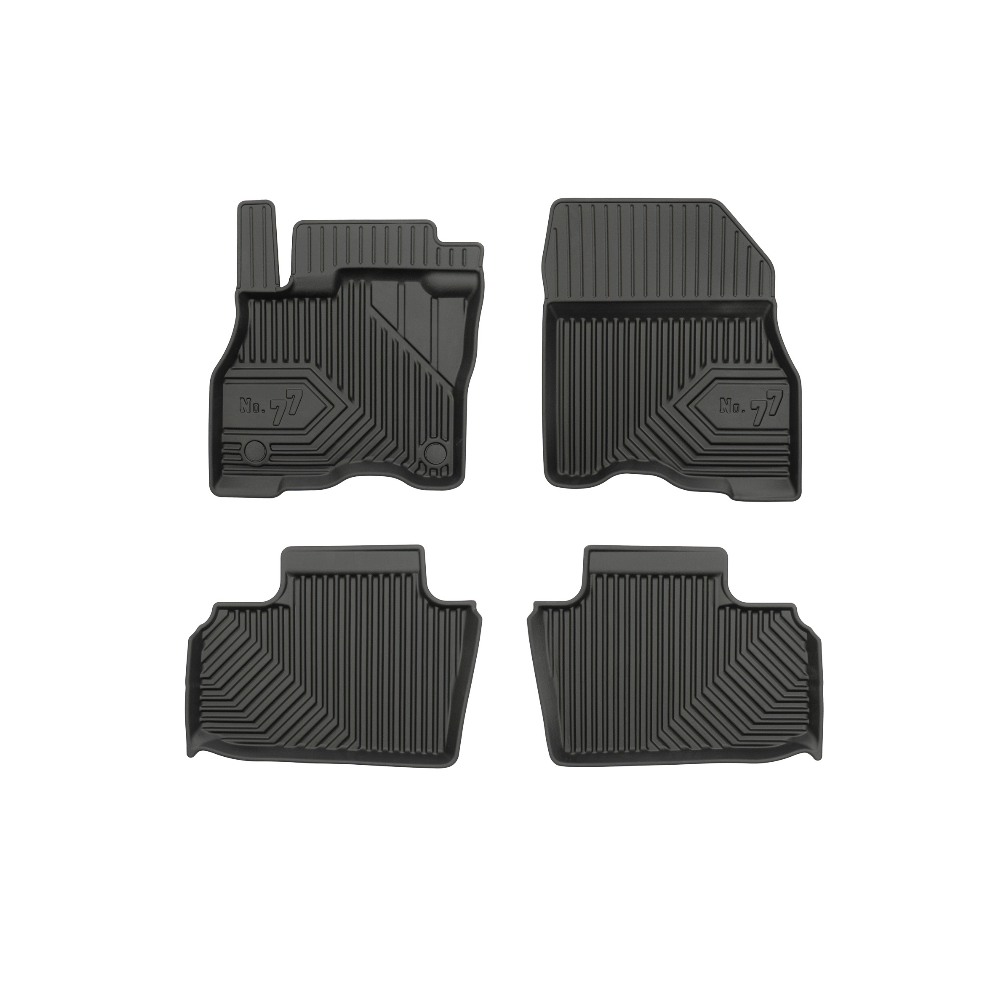 Guminiai Premium 77 kilimėliai: (aukštos kokybės plastiko, gumos mišinys / TPE, komplektas - 4vnt., juodi, krašto aukštis 4 cm, montavimo būdas - spaustukai).AUTOMOBILIŲ KILIMĖLIAI FROGUM 77 PREMIUM• Dėl naujoviškos 3D skenavimo technologijos atitinka idealiai; • Krašto aukštis - 4 cm suteikia didesnę apsaugą nuo nešvarumų • Modernus ir funkcionalus dizainas, išlaikantis nešvarumus kilimėlio viduje • Neslystantys spacialūs spaustukai, lengva montuoti; • Speciali apsauga, leidžianti nuleisti vairuotojo koją;Aukšto lygio apsauga jūsų automobiliui, kilimėliai idealiai atitinka ir puikiai priglunda prie salono grindų. Modernus ir funkcionalus dizainas, bei aukštas kraštas garantuoja efektyvų vandens ir purvo surinkimą ir neleidžia jam nutekėti. Taip automobilio salonas išlieka švarus. Pagaminti iš aukštos kokybės gumos, kurioje nėra toksiškų komponentų. Bekvapis. Kilimėliai turi spaustukus, todėl jį lengva pritvirtinti prie grindų. Guminiai kilimėliai išlaiko savo elastingumą net esant temperatūros pokyčiams. Specialus paviršius neleidžia kilimėliams slysti vairuojant, todėl labai paveikia saugumą ir kelionės komfortą.