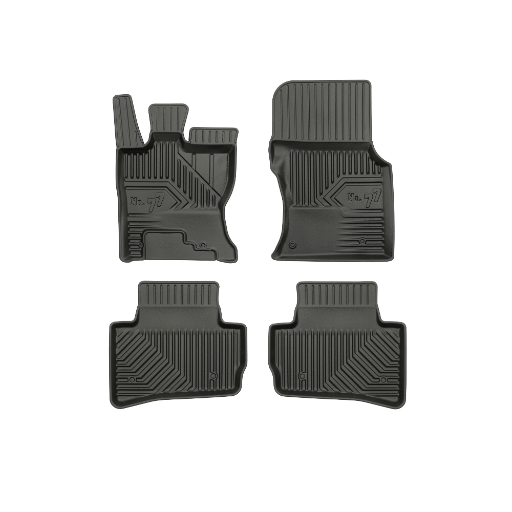 Guminiai Premium 77 kilimėliai: (aukštos kokybės plastiko, gumos mišinys / TPE, komplektas - 4vnt., juodi, krašto aukštis 4 cm, montavimo būdas - spaustukai).AUTOMOBILIŲ KILIMĖLIAI FROGUM 77 PREMIUM• Dėl naujoviškos 3D skenavimo technologijos atitinka idealiai; • Krašto aukštis - 4 cm suteikia didesnę apsaugą nuo nešvarumų • Modernus ir funkcionalus dizainas, išlaikantis nešvarumus kilimėlio viduje • Neslystantys spacialūs spaustukai, lengva montuoti; • Speciali apsauga, leidžianti nuleisti vairuotojo koją;Aukšto lygio apsauga jūsų automobiliui, kilimėliai idealiai atitinka ir puikiai priglunda prie salono grindų. Modernus ir funkcionalus dizainas, bei aukštas kraštas garantuoja efektyvų vandens ir purvo surinkimą ir neleidžia jam nutekėti. Taip automobilio salonas išlieka švarus. Pagaminti iš aukštos kokybės gumos, kurioje nėra toksiškų komponentų. Bekvapis. Kilimėliai turi spaustukus, todėl jį lengva pritvirtinti prie grindų. Guminiai kilimėliai išlaiko savo elastingumą net esant temperatūros pokyčiams. Specialus paviršius neleidžia kilimėliams slysti vairuojant, todėl labai paveikia saugumą ir kelionės komfortą.