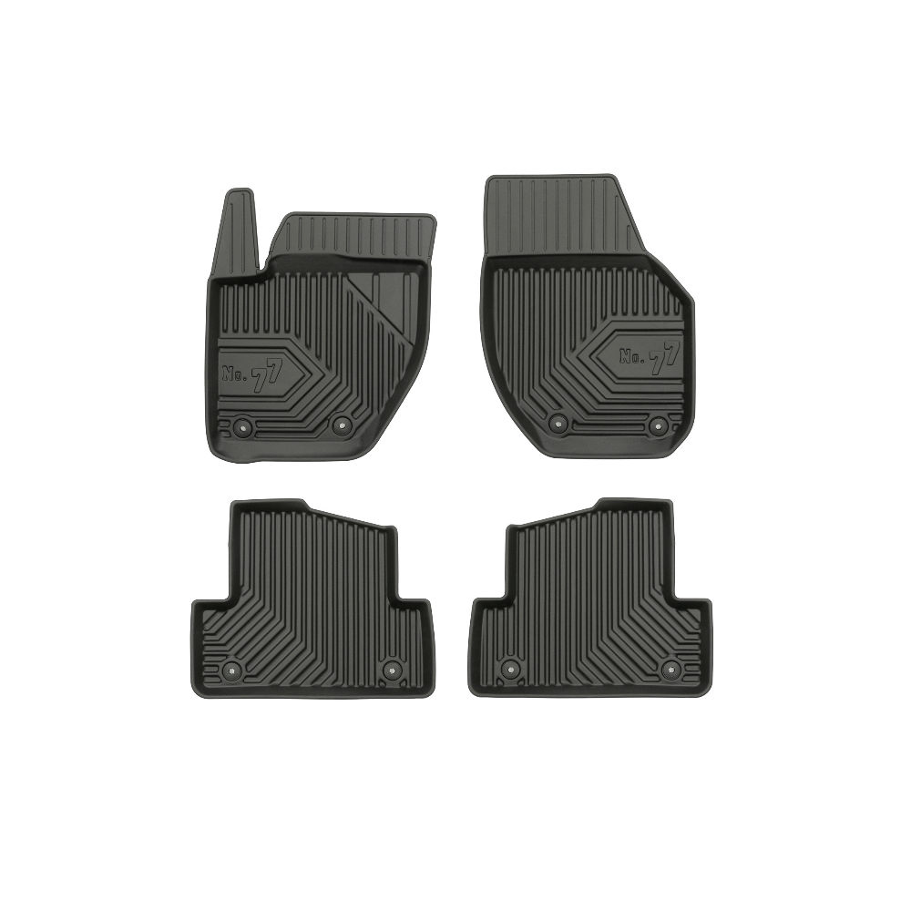 Guminiai Premium 77 kilimėliai: (aukštos kokybės plastiko, gumos mišinys / TPE, komplektas - 4vnt., juodi, krašto aukštis 4 cm, montavimo būdas - spaustukai).AUTOMOBILIŲ KILIMĖLIAI FROGUM 77 PREMIUM• Dėl naujoviškos 3D skenavimo technologijos atitinka idealiai; • Krašto aukštis - 4 cm suteikia didesnę apsaugą nuo nešvarumų • Modernus ir funkcionalus dizainas, išlaikantis nešvarumus kilimėlio viduje • Neslystantys spacialūs spaustukai, lengva montuoti; • Speciali apsauga, leidžianti nuleisti vairuotojo koją;Aukšto lygio apsauga jūsų automobiliui, kilimėliai idealiai atitinka ir puikiai priglunda prie salono grindų. Modernus ir funkcionalus dizainas, bei aukštas kraštas garantuoja efektyvų vandens ir purvo surinkimą ir neleidžia jam nutekėti. Taip automobilio salonas išlieka švarus. Pagaminti iš aukštos kokybės gumos, kurioje nėra toksiškų komponentų. Bekvapis. Kilimėliai turi spaustukus, todėl jį lengva pritvirtinti prie grindų. Guminiai kilimėliai išlaiko savo elastingumą net esant temperatūros pokyčiams. Specialus paviršius neleidžia kilimėliams slysti vairuojant, todėl labai paveikia saugumą ir kelionės komfortą.