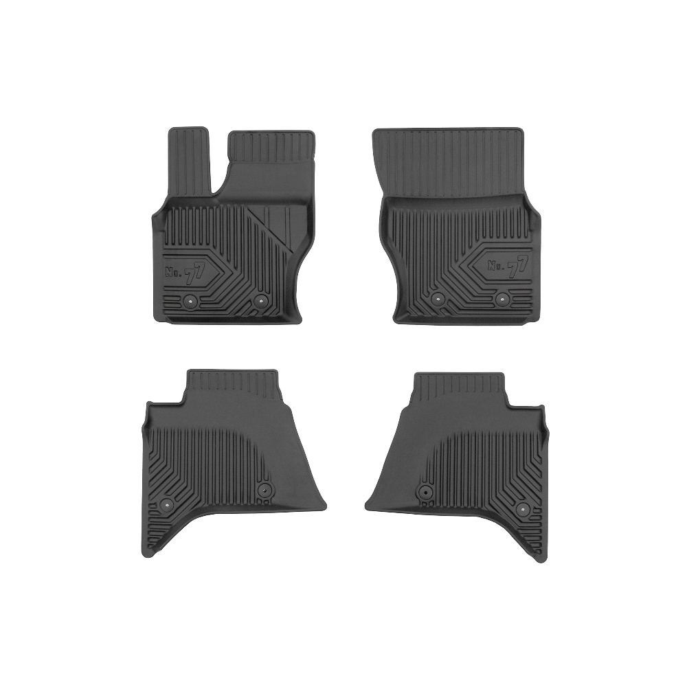 Guminiai Premium 77 kilimėliai: (aukštos kokybės plastiko, gumos mišinys / TPE, komplektas - 4vnt., juodi, krašto aukštis 4 cm, montavimo būdas - spaustukai).AUTOMOBILIŲ KILIMĖLIAI FROGUM 77 PREMIUM• Dėl naujoviškos 3D skenavimo technologijos atitinka idealiai; • Krašto aukštis - 4 cm suteikia didesnę apsaugą nuo nešvarumų • Modernus ir funkcionalus dizainas, išlaikantis nešvarumus kilimėlio viduje • Neslystantys spacialūs spaustukai, lengva montuoti; • Speciali apsauga, leidžianti nuleisti vairuotojo koją;Aukšto lygio apsauga jūsų automobiliui, kilimėliai idealiai atitinka ir puikiai priglunda prie salono grindų. Modernus ir funkcionalus dizainas, bei aukštas kraštas garantuoja efektyvų vandens ir purvo surinkimą ir neleidžia jam nutekėti. Taip automobilio salonas išlieka švarus. Pagaminti iš aukštos kokybės gumos, kurioje nėra toksiškų komponentų. Bekvapis. Kilimėliai turi spaustukus, todėl jį lengva pritvirtinti prie grindų. Guminiai kilimėliai išlaiko savo elastingumą net esant temperatūros pokyčiams. Specialus paviršius neleidžia kilimėliams slysti vairuojant, todėl labai paveikia saugumą ir kelionės komfortą.