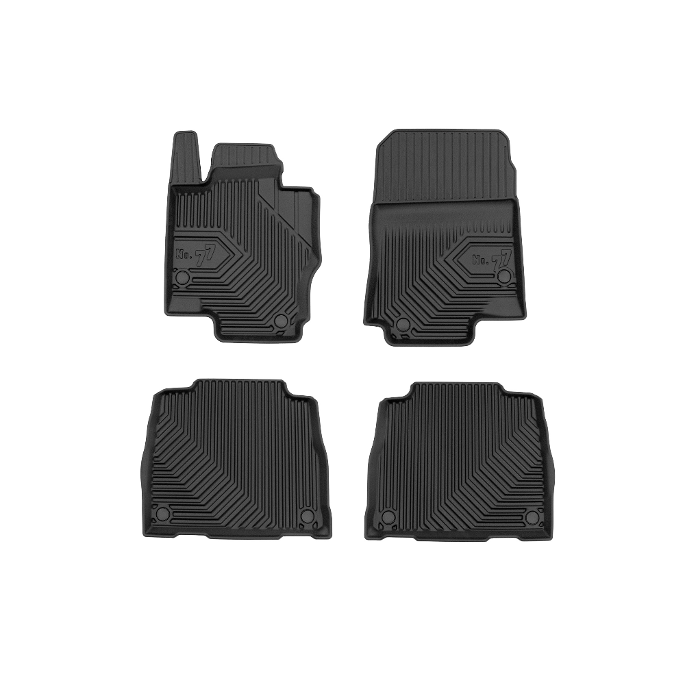 Guminiai Premium 77 kilimėliai: (aukštos kokybės plastiko, gumos mišinys / TPE, komplektas - 4vnt., juodi, krašto aukštis 4 cm, montavimo būdas - spaustukai).AUTOMOBILIŲ KILIMĖLIAI FROGUM 77 PREMIUM• Dėl naujoviškos 3D skenavimo technologijos atitinka idealiai; • Krašto aukštis - 4 cm suteikia didesnę apsaugą nuo nešvarumų • Modernus ir funkcionalus dizainas, išlaikantis nešvarumus kilimėlio viduje • Neslystantys spacialūs spaustukai, lengva montuoti; • Speciali apsauga, leidžianti nuleisti vairuotojo koją;Aukšto lygio apsauga jūsų automobiliui, kilimėliai idealiai atitinka ir puikiai priglunda prie salono grindų. Modernus ir funkcionalus dizainas, bei aukštas kraštas garantuoja efektyvų vandens ir purvo surinkimą ir neleidžia jam nutekėti. Taip automobilio salonas išlieka švarus. Pagaminti iš aukštos kokybės gumos, kurioje nėra toksiškų komponentų. Bekvapis. Kilimėliai turi spaustukus, todėl jį lengva pritvirtinti prie grindų. Guminiai kilimėliai išlaiko savo elastingumą net esant temperatūros pokyčiams. Specialus paviršius neleidžia kilimėliams slysti vairuojant, todėl labai paveikia saugumą ir kelionės komfortą.