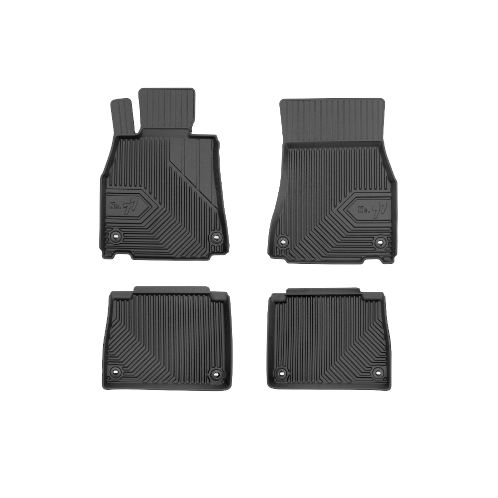 Guminiai Premium 77 kilimėliai: (aukštos kokybės plastiko, gumos mišinys / TPE, komplektas - 4vnt., juodi, krašto aukštis 4 cm, montavimo būdas - spaustukai).AUTOMOBILIŲ KILIMĖLIAI FROGUM 77 PREMIUM• Dėl naujoviškos 3D skenavimo technologijos atitinka idealiai; • Krašto aukštis - 4 cm suteikia didesnę apsaugą nuo nešvarumų • Modernus ir funkcionalus dizainas, išlaikantis nešvarumus kilimėlio viduje • Neslystantys spacialūs spaustukai, lengva montuoti; • Speciali apsauga, leidžianti nuleisti vairuotojo koją;Aukšto lygio apsauga jūsų automobiliui, kilimėliai idealiai atitinka ir puikiai priglunda prie salono grindų. Modernus ir funkcionalus dizainas, bei aukštas kraštas garantuoja efektyvų vandens ir purvo surinkimą ir neleidžia jam nutekėti. Taip automobilio salonas išlieka švarus. Pagaminti iš aukštos kokybės gumos, kurioje nėra toksiškų komponentų. Bekvapis. Kilimėliai turi spaustukus, todėl jį lengva pritvirtinti prie grindų. Guminiai kilimėliai išlaiko savo elastingumą net esant temperatūros pokyčiams. Specialus paviršius neleidžia kilimėliams slysti vairuojant, todėl labai paveikia saugumą ir kelionės komfortą.