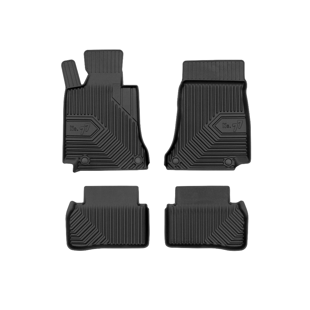 Guminiai Premium 77 kilimėliai: (aukštos kokybės plastiko, gumos mišinys / TPE, komplektas - 4vnt., juodi, krašto aukštis 4 cm, montavimo būdas - spaustukai).AUTOMOBILIŲ KILIMĖLIAI FROGUM 77 PREMIUM• Dėl naujoviškos 3D skenavimo technologijos atitinka idealiai; • Krašto aukštis - 4 cm suteikia didesnę apsaugą nuo nešvarumų • Modernus ir funkcionalus dizainas, išlaikantis nešvarumus kilimėlio viduje • Neslystantys spacialūs spaustukai, lengva montuoti; • Speciali apsauga, leidžianti nuleisti vairuotojo koją;Aukšto lygio apsauga jūsų automobiliui, kilimėliai idealiai atitinka ir puikiai priglunda prie salono grindų. Modernus ir funkcionalus dizainas, bei aukštas kraštas garantuoja efektyvų vandens ir purvo surinkimą ir neleidžia jam nutekėti. Taip automobilio salonas išlieka švarus. Pagaminti iš aukštos kokybės gumos, kurioje nėra toksiškų komponentų. Bekvapis. Kilimėliai turi spaustukus, todėl jį lengva pritvirtinti prie grindų. Guminiai kilimėliai išlaiko savo elastingumą net esant temperatūros pokyčiams. Specialus paviršius neleidžia kilimėliams slysti vairuojant, todėl labai paveikia saugumą ir kelionės komfortą.