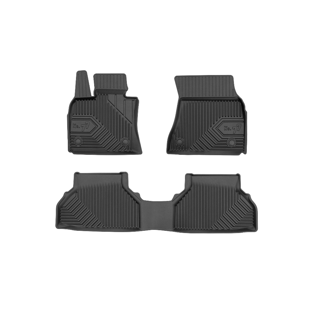 Guminiai Premium 77 kilimėliai: (aukštos kokybės plastiko, gumos mišinys / TPE, komplektas - 3vnt., juodi, krašto aukštis 4 cm, montavimo būdas - spaustukai).AUTOMOBILIŲ KILIMĖLIAI FROGUM 77 PREMIUM• Dėl naujoviškos 3D skenavimo technologijos atitinka idealiai; • Krašto aukštis - 4 cm suteikia didesnę apsaugą nuo nešvarumų • Modernus ir funkcionalus dizainas, išlaikantis nešvarumus kilimėlio viduje • Neslystantys spacialūs spaustukai, lengva montuoti; • Speciali apsauga, leidžianti nuleisti vairuotojo koją;Aukšto lygio apsauga jūsų automobiliui, kilimėliai idealiai atitinka ir puikiai priglunda prie salono grindų. Modernus ir funkcionalus dizainas, bei aukštas kraštas garantuoja efektyvų vandens ir purvo surinkimą ir neleidžia jam nutekėti. Taip automobilio salonas išlieka švarus. Pagaminti iš aukštos kokybės gumos, kurioje nėra toksiškų komponentų. Bekvapis. Kilimėliai turi spaustukus, todėl jį lengva pritvirtinti prie grindų. Guminiai kilimėliai išlaiko savo elastingumą net esant temperatūros pokyčiams. Specialus paviršius neleidžia kilimėliams slysti vairuojant, todėl labai paveikia saugumą ir kelionės komfortą.