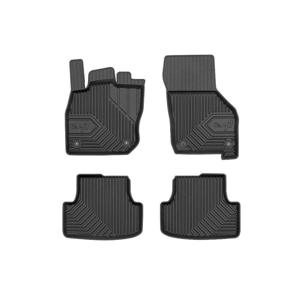 Guminiai Premium 77 kilimėliai: (aukštos kokybės plastiko, gumos mišinys / TPE, komplektas - 4vnt., juodi, krašto aukštis 4 cm, montavimo būdas - spaustukai).AUTOMOBILIŲ KILIMĖLIAI FROGUM 77 PREMIUM• Dėl naujoviškos 3D skenavimo technologijos atitinka idealiai; • Krašto aukštis - 4 cm suteikia didesnę apsaugą nuo nešvarumų • Modernus ir funkcionalus dizainas, išlaikantis nešvarumus kilimėlio viduje • Neslystantys spacialūs spaustukai, lengva montuoti; • Speciali apsauga, leidžianti nuleisti vairuotojo koją;Aukšto lygio apsauga jūsų automobiliui, kilimėliai idealiai atitinka ir puikiai priglunda prie salono grindų. Modernus ir funkcionalus dizainas, bei aukštas kraštas garantuoja efektyvų vandens ir purvo surinkimą ir neleidžia jam nutekėti. Taip automobilio salonas išlieka švarus. Pagaminti iš aukštos kokybės gumos, kurioje nėra toksiškų komponentų. Bekvapis. Kilimėliai turi spaustukus, todėl jį lengva pritvirtinti prie grindų. Guminiai kilimėliai išlaiko savo elastingumą net esant temperatūros pokyčiams. Specialus paviršius neleidžia kilimėliams slysti vairuojant, todėl labai paveikia saugumą ir kelionės komfortą.
