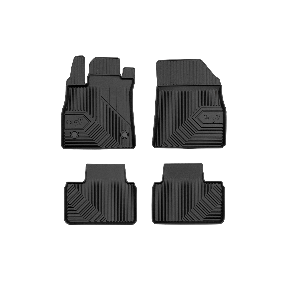 Guminiai Premium 77 kilimėliai: (aukštos kokybės plastiko, gumos mišinys / TPE, komplektas - 4vnt., juodi, krašto aukštis 4 cm, montavimo būdas - spaustukai).AUTOMOBILIŲ KILIMĖLIAI FROGUM 77 PREMIUM• Dėl naujoviškos 3D skenavimo technologijos atitinka idealiai; • Krašto aukštis - 4 cm suteikia didesnę apsaugą nuo nešvarumų • Modernus ir funkcionalus dizainas, išlaikantis nešvarumus kilimėlio viduje • Neslystantys spacialūs spaustukai, lengva montuoti; • Speciali apsauga, leidžianti nuleisti vairuotojo koją;Aukšto lygio apsauga jūsų automobiliui, kilimėliai idealiai atitinka ir puikiai priglunda prie salono grindų. Modernus ir funkcionalus dizainas, bei aukštas kraštas garantuoja efektyvų vandens ir purvo surinkimą ir neleidžia jam nutekėti. Taip automobilio salonas išlieka švarus. Pagaminti iš aukštos kokybės gumos, kurioje nėra toksiškų komponentų. Bekvapis. Kilimėliai turi spaustukus, todėl jį lengva pritvirtinti prie grindų. Guminiai kilimėliai išlaiko savo elastingumą net esant temperatūros pokyčiams. Specialus paviršius neleidžia kilimėliams slysti vairuojant, todėl labai paveikia saugumą ir kelionės komfortą.
