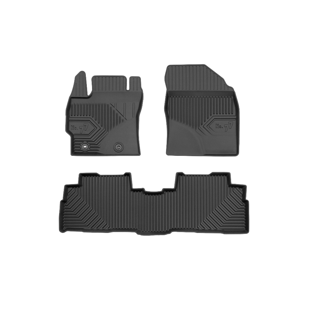 Guminiai Premium 77 kilimėliai: (aukštos kokybės plastiko, gumos mišinys / TPE, komplektas - 3vnt., juodi, krašto aukštis 4 cm, montavimo būdas - spaustukai).AUTOMOBILIŲ KILIMĖLIAI FROGUM 77 PREMIUM• Dėl naujoviškos 3D skenavimo technologijos atitinka idealiai; • Krašto aukštis - 4 cm suteikia didesnę apsaugą nuo nešvarumų • Modernus ir funkcionalus dizainas, išlaikantis nešvarumus kilimėlio viduje • Neslystantys spacialūs spaustukai, lengva montuoti; • Speciali apsauga, leidžianti nuleisti vairuotojo koją;Aukšto lygio apsauga jūsų automobiliui, kilimėliai idealiai atitinka ir puikiai priglunda prie salono grindų. Modernus ir funkcionalus dizainas, bei aukštas kraštas garantuoja efektyvų vandens ir purvo surinkimą ir neleidžia jam nutekėti. Taip automobilio salonas išlieka švarus. Pagaminti iš aukštos kokybės gumos, kurioje nėra toksiškų komponentų. Bekvapis. Kilimėliai turi spaustukus, todėl jį lengva pritvirtinti prie grindų. Guminiai kilimėliai išlaiko savo elastingumą net esant temperatūros pokyčiams. Specialus paviršius neleidžia kilimėliams slysti vairuojant, todėl labai paveikia saugumą ir kelionės komfortą.