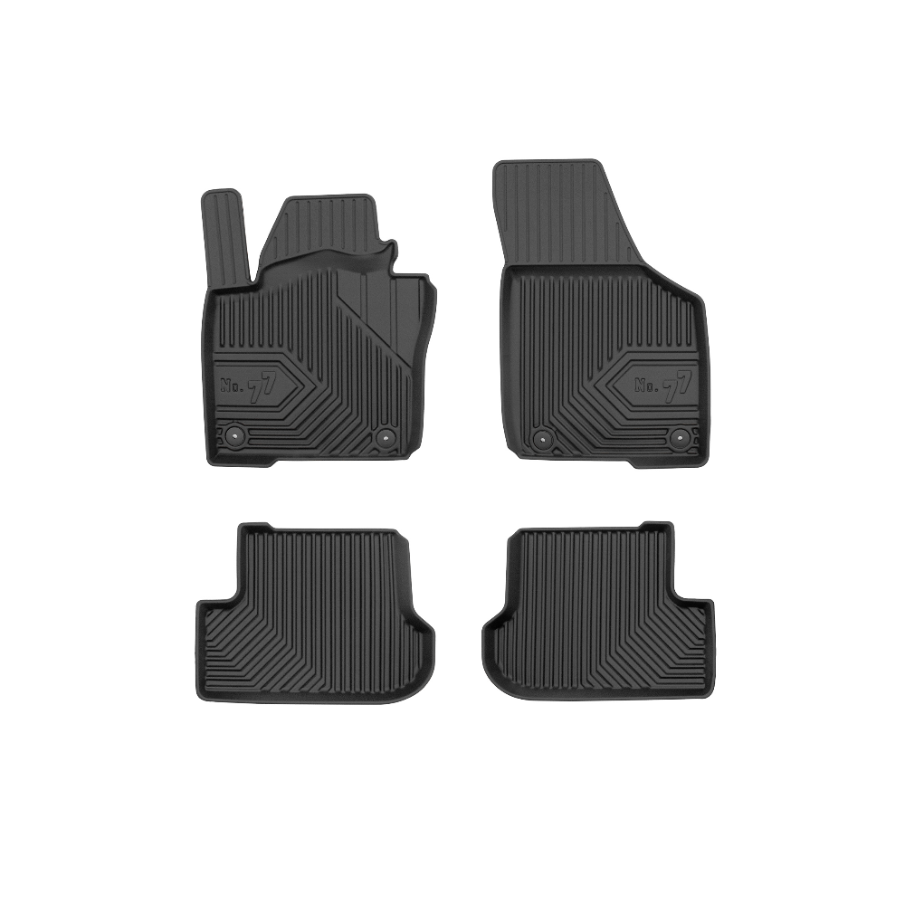 Guminiai Premium 77 kilimėliai: (aukštos kokybės plastiko, gumos mišinys / TPE, komplektas - 4vnt., juodi, krašto aukštis 4 cm, montavimo būdas - spaustukai).AUTOMOBILIŲ KILIMĖLIAI FROGUM 77 PREMIUM• Dėl naujoviškos 3D skenavimo technologijos atitinka idealiai; • Krašto aukštis - 4 cm suteikia didesnę apsaugą nuo nešvarumų • Modernus ir funkcionalus dizainas, išlaikantis nešvarumus kilimėlio viduje • Neslystantys spacialūs spaustukai, lengva montuoti; • Speciali apsauga, leidžianti nuleisti vairuotojo koją;Aukšto lygio apsauga jūsų automobiliui, kilimėliai idealiai atitinka ir puikiai priglunda prie salono grindų. Modernus ir funkcionalus dizainas, bei aukštas kraštas garantuoja efektyvų vandens ir purvo surinkimą ir neleidžia jam nutekėti. Taip automobilio salonas išlieka švarus. Pagaminti iš aukštos kokybės gumos, kurioje nėra toksiškų komponentų. Bekvapis. Kilimėliai turi spaustukus, todėl jį lengva pritvirtinti prie grindų. Guminiai kilimėliai išlaiko savo elastingumą net esant temperatūros pokyčiams. Specialus paviršius neleidžia kilimėliams slysti vairuojant, todėl labai paveikia saugumą ir kelionės komfortą.