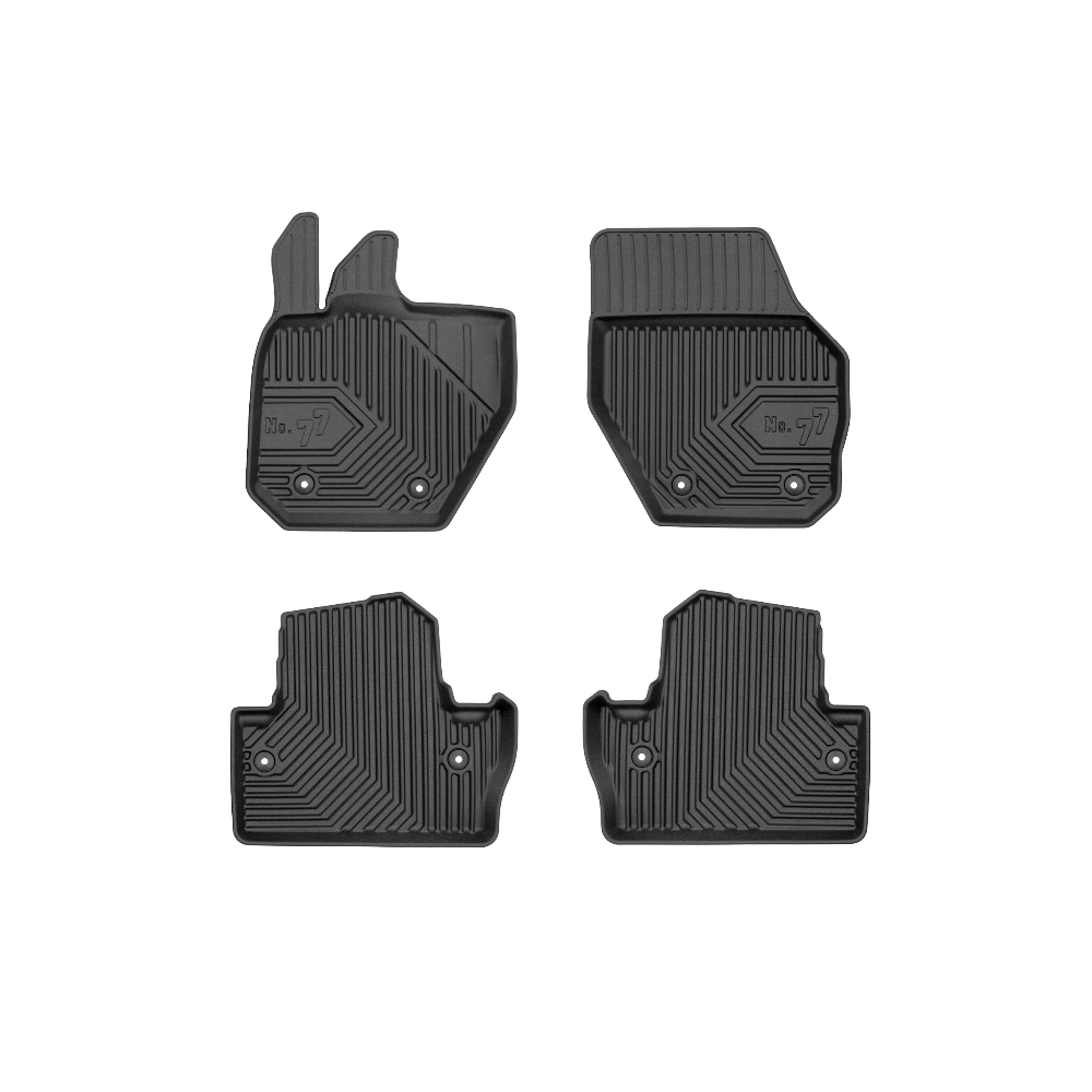 Guminiai Premium 77 kilimėliai: (aukštos kokybės plastiko, gumos mišinys / TPE, komplektas - 4vnt., juodi, krašto aukštis 4 cm, montavimo būdas - spaustukai).AUTOMOBILIŲ KILIMĖLIAI FROGUM 77 PREMIUM• Dėl naujoviškos 3D skenavimo technologijos atitinka idealiai; • Krašto aukštis - 4 cm suteikia didesnę apsaugą nuo nešvarumų • Modernus ir funkcionalus dizainas, išlaikantis nešvarumus kilimėlio viduje • Neslystantys spacialūs spaustukai, lengva montuoti; • Speciali apsauga, leidžianti nuleisti vairuotojo koją;Aukšto lygio apsauga jūsų automobiliui, kilimėliai idealiai atitinka ir puikiai priglunda prie salono grindų. Modernus ir funkcionalus dizainas, bei aukštas kraštas garantuoja efektyvų vandens ir purvo surinkimą ir neleidžia jam nutekėti. Taip automobilio salonas išlieka švarus. Pagaminti iš aukštos kokybės gumos, kurioje nėra toksiškų komponentų. Bekvapis. Kilimėliai turi spaustukus, todėl jį lengva pritvirtinti prie grindų. Guminiai kilimėliai išlaiko savo elastingumą net esant temperatūros pokyčiams. Specialus paviršius neleidžia kilimėliams slysti vairuojant, todėl labai paveikia saugumą ir kelionės komfortą.
