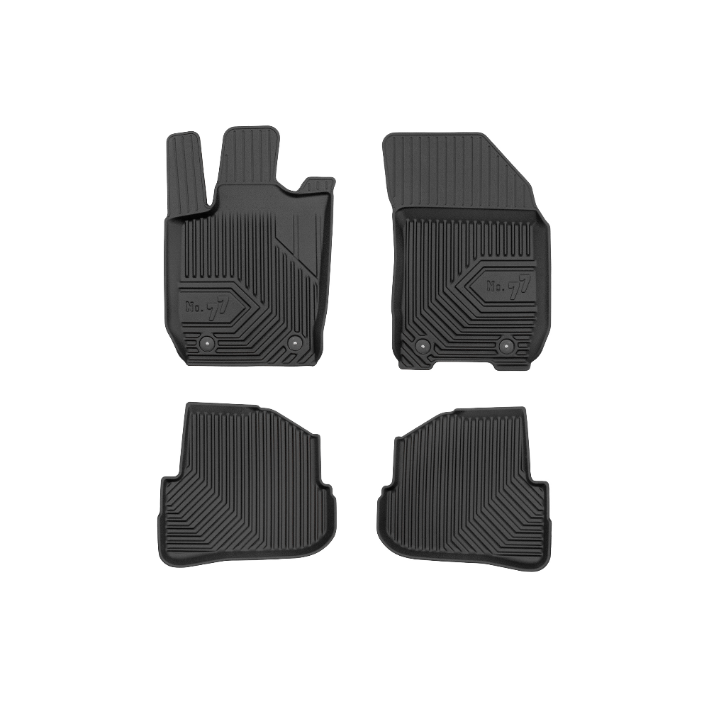 Guminiai Premium 77 kilimėliai: (aukštos kokybės plastiko, gumos mišinys / TPE, komplektas - 4vnt., juodi, krašto aukštis 4 cm, montavimo būdas - spaustukai).AUTOMOBILIŲ KILIMĖLIAI FROGUM 77 PREMIUM• Dėl naujoviškos 3D skenavimo technologijos atitinka idealiai; • Krašto aukštis - 4 cm suteikia didesnę apsaugą nuo nešvarumų • Modernus ir funkcionalus dizainas, išlaikantis nešvarumus kilimėlio viduje • Neslystantys spacialūs spaustukai, lengva montuoti; • Speciali apsauga, leidžianti nuleisti vairuotojo koją;Aukšto lygio apsauga jūsų automobiliui, kilimėliai idealiai atitinka ir puikiai priglunda prie salono grindų. Modernus ir funkcionalus dizainas, bei aukštas kraštas garantuoja efektyvų vandens ir purvo surinkimą ir neleidžia jam nutekėti. Taip automobilio salonas išlieka švarus. Pagaminti iš aukštos kokybės gumos, kurioje nėra toksiškų komponentų. Bekvapis. Kilimėliai turi spaustukus, todėl jį lengva pritvirtinti prie grindų. Guminiai kilimėliai išlaiko savo elastingumą net esant temperatūros pokyčiams. Specialus paviršius neleidžia kilimėliams slysti vairuojant, todėl labai paveikia saugumą ir kelionės komfortą.