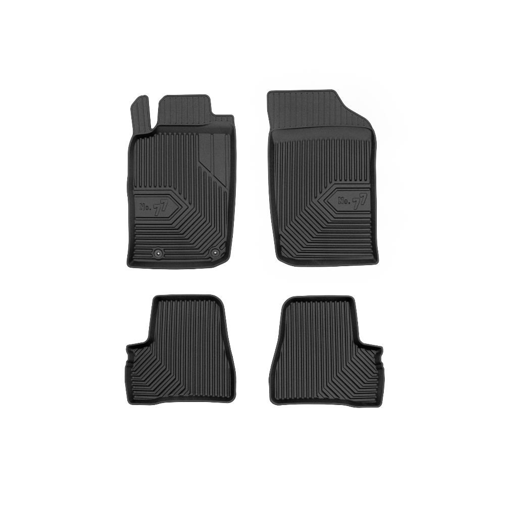 Guminiai Premium 77 kilimėliai: (aukštos kokybės plastiko, gumos mišinys / TPE, komplektas - 4vnt., juodi, krašto aukštis 4 cm, montavimo būdas - spaustukai).AUTOMOBILIŲ KILIMĖLIAI FROGUM 77 PREMIUM• Dėl naujoviškos 3D skenavimo technologijos atitinka idealiai; • Krašto aukštis - 4 cm suteikia didesnę apsaugą nuo nešvarumų • Modernus ir funkcionalus dizainas, išlaikantis nešvarumus kilimėlio viduje • Neslystantys spacialūs spaustukai, lengva montuoti; • Speciali apsauga, leidžianti nuleisti vairuotojo koją;Aukšto lygio apsauga jūsų automobiliui, kilimėliai idealiai atitinka ir puikiai priglunda prie salono grindų. Modernus ir funkcionalus dizainas, bei aukštas kraštas garantuoja efektyvų vandens ir purvo surinkimą ir neleidžia jam nutekėti. Taip automobilio salonas išlieka švarus. Pagaminti iš aukštos kokybės gumos, kurioje nėra toksiškų komponentų. Bekvapis. Kilimėliai turi spaustukus, todėl jį lengva pritvirtinti prie grindų. Guminiai kilimėliai išlaiko savo elastingumą net esant temperatūros pokyčiams. Specialus paviršius neleidžia kilimėliams slysti vairuojant, todėl labai paveikia saugumą ir kelionės komfortą.