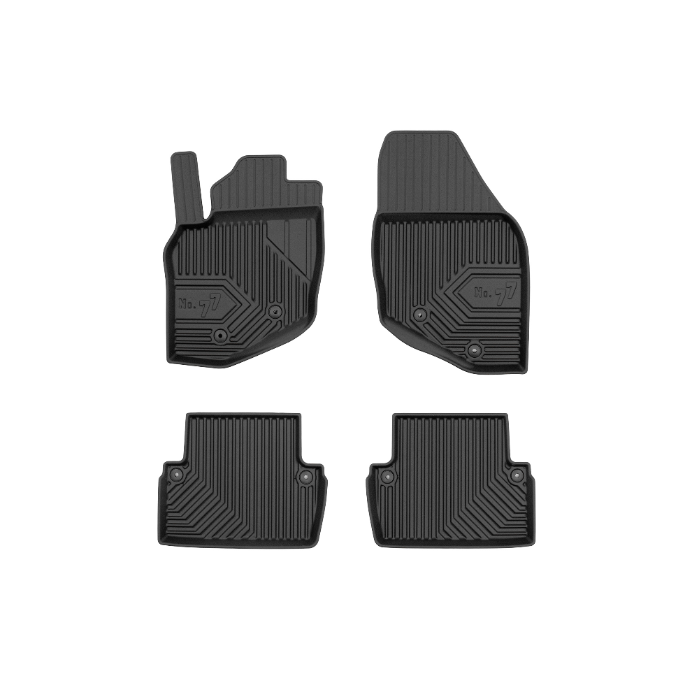 Guminiai Premium 77 kilimėliai: (aukštos kokybės plastiko, gumos mišinys / TPE, komplektas - 4vnt., juodi, krašto aukštis 4 cm, montavimo būdas - spaustukai).AUTOMOBILIŲ KILIMĖLIAI FROGUM 77 PREMIUM• Dėl naujoviškos 3D skenavimo technologijos atitinka idealiai; • Krašto aukštis - 4 cm suteikia didesnę apsaugą nuo nešvarumų • Modernus ir funkcionalus dizainas, išlaikantis nešvarumus kilimėlio viduje • Neslystantys spacialūs spaustukai, lengva montuoti; • Speciali apsauga, leidžianti nuleisti vairuotojo koją;Aukšto lygio apsauga jūsų automobiliui, kilimėliai idealiai atitinka ir puikiai priglunda prie salono grindų. Modernus ir funkcionalus dizainas, bei aukštas kraštas garantuoja efektyvų vandens ir purvo surinkimą ir neleidžia jam nutekėti. Taip automobilio salonas išlieka švarus. Pagaminti iš aukštos kokybės gumos, kurioje nėra toksiškų komponentų. Bekvapis. Kilimėliai turi spaustukus, todėl jį lengva pritvirtinti prie grindų. Guminiai kilimėliai išlaiko savo elastingumą net esant temperatūros pokyčiams. Specialus paviršius neleidžia kilimėliams slysti vairuojant, todėl labai paveikia saugumą ir kelionės komfortą.