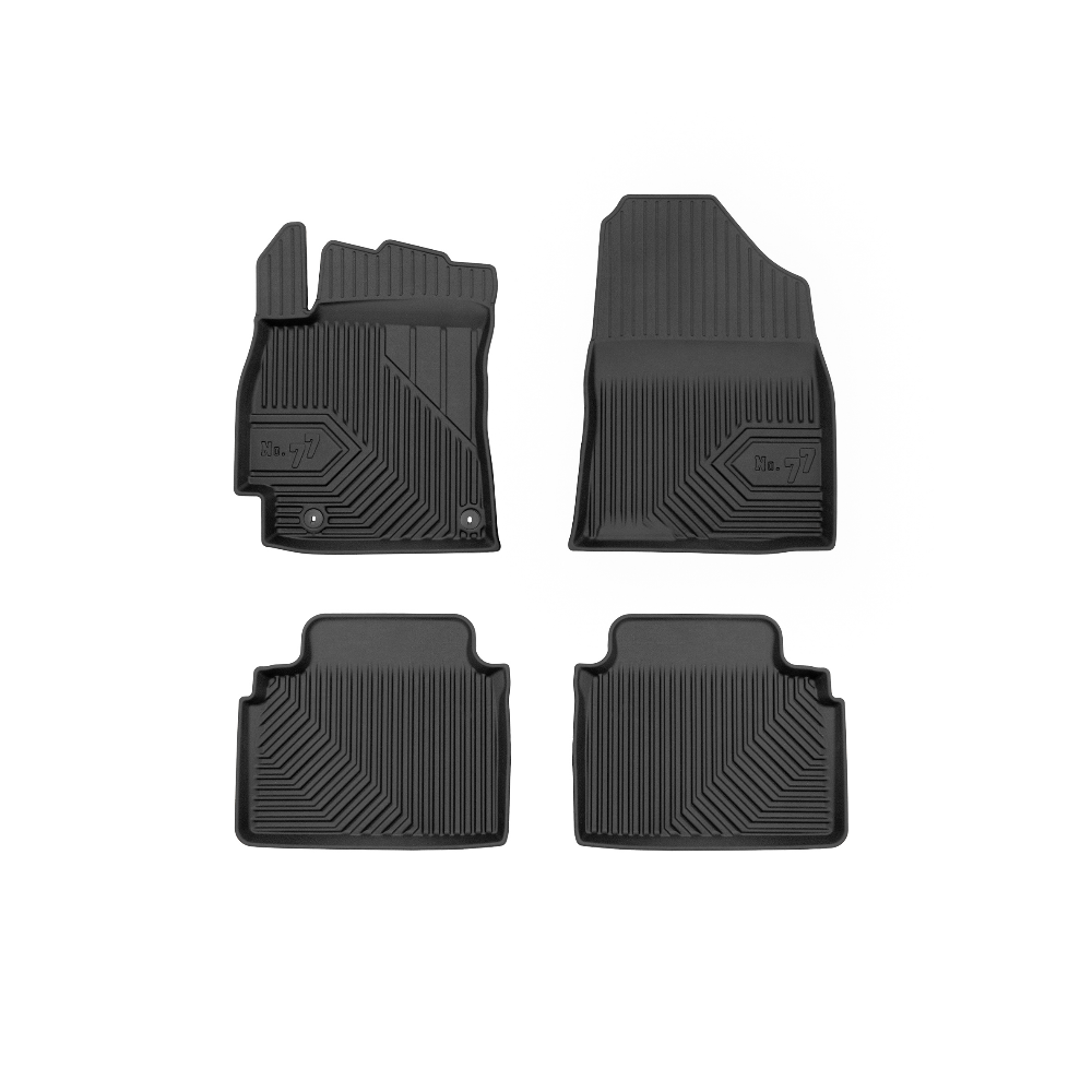 Guminiai Premium 77 kilimėliai: (aukštos kokybės plastiko, gumos mišinys / TPE, komplektas - 4vnt., juodi, krašto aukštis 4 cm, montavimo būdas - spaustukai).AUTOMOBILIŲ KILIMĖLIAI FROGUM 77 PREMIUM• Dėl naujoviškos 3D skenavimo technologijos atitinka idealiai; • Krašto aukštis - 4 cm suteikia didesnę apsaugą nuo nešvarumų • Modernus ir funkcionalus dizainas, išlaikantis nešvarumus kilimėlio viduje • Neslystantys spacialūs spaustukai, lengva montuoti; • Speciali apsauga, leidžianti nuleisti vairuotojo koją;Aukšto lygio apsauga jūsų automobiliui, kilimėliai idealiai atitinka ir puikiai priglunda prie salono grindų. Modernus ir funkcionalus dizainas, bei aukštas kraštas garantuoja efektyvų vandens ir purvo surinkimą ir neleidžia jam nutekėti. Taip automobilio salonas išlieka švarus. Pagaminti iš aukštos kokybės gumos, kurioje nėra toksiškų komponentų. Bekvapis. Kilimėliai turi spaustukus, todėl jį lengva pritvirtinti prie grindų. Guminiai kilimėliai išlaiko savo elastingumą net esant temperatūros pokyčiams. Specialus paviršius neleidžia kilimėliams slysti vairuojant, todėl labai paveikia saugumą ir kelionės komfortą.