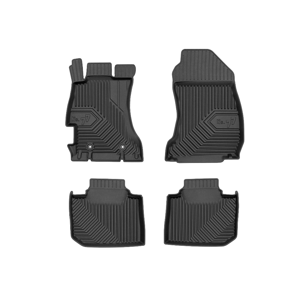 Guminiai Premium 77 kilimėliai: (aukštos kokybės plastiko, gumos mišinys / TPE, komplektas - 4vnt., juodi, krašto aukštis 4 cm, montavimo būdas - spaustukai).AUTOMOBILIŲ KILIMĖLIAI FROGUM 77 PREMIUM• Dėl naujoviškos 3D skenavimo technologijos atitinka idealiai; • Krašto aukštis - 4 cm suteikia didesnę apsaugą nuo nešvarumų • Modernus ir funkcionalus dizainas, išlaikantis nešvarumus kilimėlio viduje • Neslystantys spacialūs spaustukai, lengva montuoti; • Speciali apsauga, leidžianti nuleisti vairuotojo koją;Aukšto lygio apsauga jūsų automobiliui, kilimėliai idealiai atitinka ir puikiai priglunda prie salono grindų. Modernus ir funkcionalus dizainas, bei aukštas kraštas garantuoja efektyvų vandens ir purvo surinkimą ir neleidžia jam nutekėti. Taip automobilio salonas išlieka švarus. Pagaminti iš aukštos kokybės gumos, kurioje nėra toksiškų komponentų. Bekvapis. Kilimėliai turi spaustukus, todėl jį lengva pritvirtinti prie grindų. Guminiai kilimėliai išlaiko savo elastingumą net esant temperatūros pokyčiams. Specialus paviršius neleidžia kilimėliams slysti vairuojant, todėl labai paveikia saugumą ir kelionės komfortą.