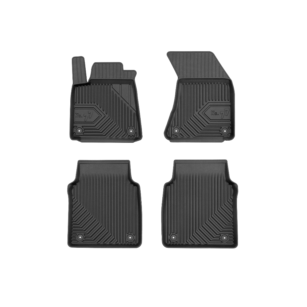 Guminiai Premium 77 kilimėliai: (aukštos kokybės plastiko, gumos mišinys / TPE, komplektas - 4vnt., juodi, krašto aukštis 4 cm, montavimo būdas - spaustukai).AUTOMOBILIŲ KILIMĖLIAI FROGUM 77 PREMIUM• Dėl naujoviškos 3D skenavimo technologijos atitinka idealiai; • Krašto aukštis - 4 cm suteikia didesnę apsaugą nuo nešvarumų • Modernus ir funkcionalus dizainas, išlaikantis nešvarumus kilimėlio viduje • Neslystantys spacialūs spaustukai, lengva montuoti; • Speciali apsauga, leidžianti nuleisti vairuotojo koją;Aukšto lygio apsauga jūsų automobiliui, kilimėliai idealiai atitinka ir puikiai priglunda prie salono grindų. Modernus ir funkcionalus dizainas, bei aukštas kraštas garantuoja efektyvų vandens ir purvo surinkimą ir neleidžia jam nutekėti. Taip automobilio salonas išlieka švarus. Pagaminti iš aukštos kokybės gumos, kurioje nėra toksiškų komponentų. Bekvapis. Kilimėliai turi spaustukus, todėl jį lengva pritvirtinti prie grindų. Guminiai kilimėliai išlaiko savo elastingumą net esant temperatūros pokyčiams. Specialus paviršius neleidžia kilimėliams slysti vairuojant, todėl labai paveikia saugumą ir kelionės komfortą.