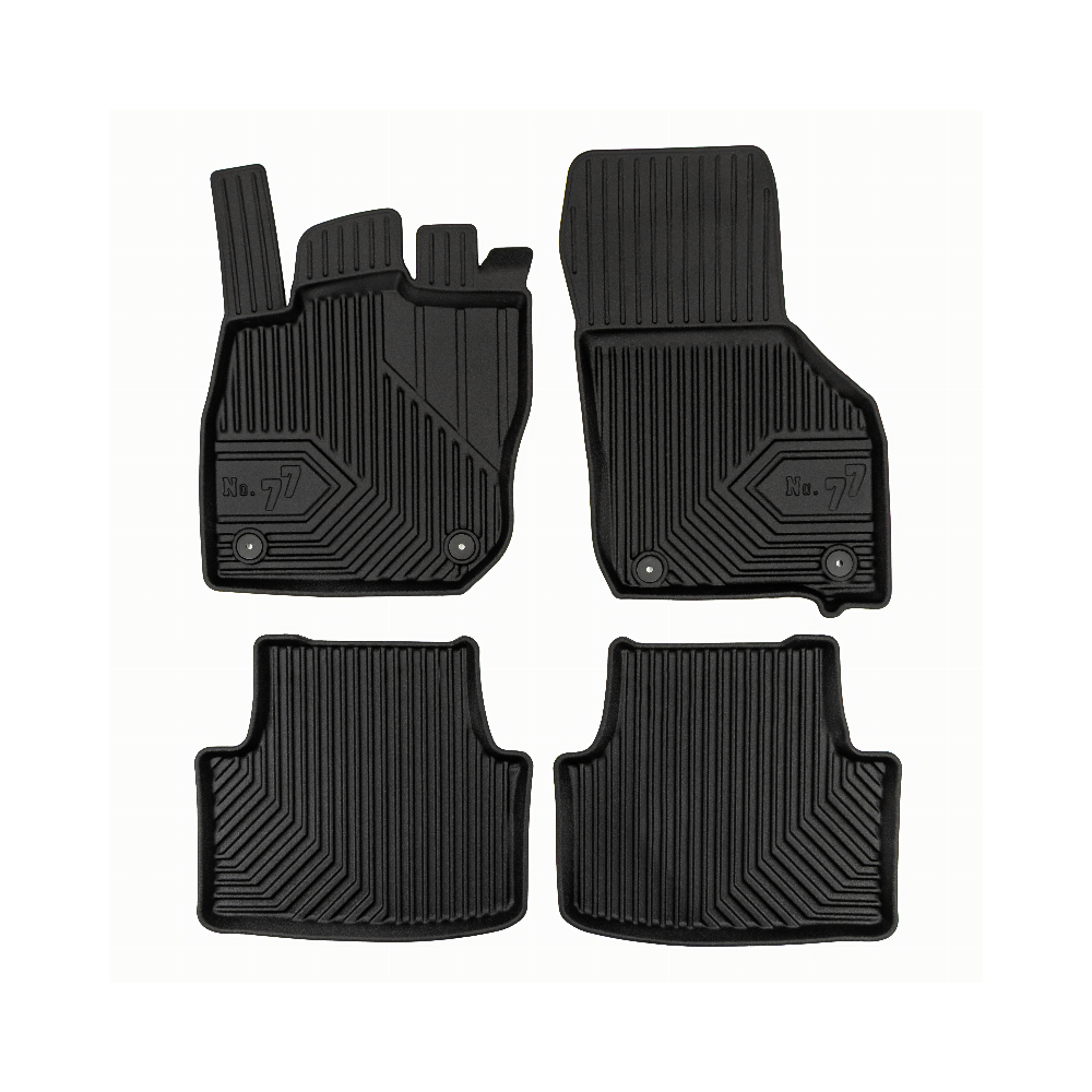 Guminiai Premium 77 kilimėliai: (aukštos kokybės plastiko, gumos mišinys / TPE, komplektas - 4vnt., juodi, krašto aukštis 4 cm, montavimo būdas - spaustukai).AUTOMOBILIŲ KILIMĖLIAI FROGUM 77 PREMIUM• Dėl naujoviškos 3D skenavimo technologijos atitinka idealiai; • Krašto aukštis - 4 cm suteikia didesnę apsaugą nuo nešvarumų • Modernus ir funkcionalus dizainas, išlaikantis nešvarumus kilimėlio viduje • Neslystantys spacialūs spaustukai, lengva montuoti; • Speciali apsauga, leidžianti nuleisti vairuotojo koją;Aukšto lygio apsauga jūsų automobiliui, kilimėliai idealiai atitinka ir puikiai priglunda prie salono grindų. Modernus ir funkcionalus dizainas, bei aukštas kraštas garantuoja efektyvų vandens ir purvo surinkimą ir neleidžia jam nutekėti. Taip automobilio salonas išlieka švarus. Pagaminti iš aukštos kokybės gumos, kurioje nėra toksiškų komponentų. Bekvapis. Kilimėliai turi spaustukus, todėl jį lengva pritvirtinti prie grindų. Guminiai kilimėliai išlaiko savo elastingumą net esant temperatūros pokyčiams. Specialus paviršius neleidžia kilimėliams slysti vairuojant, todėl labai paveikia saugumą ir kelionės komfortą.