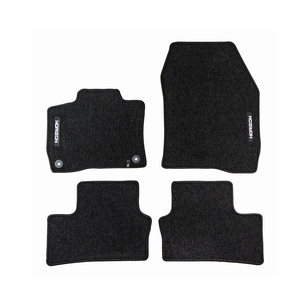 ELEGANTIŠKAS INTERJERASPremium klasės HORIZON kilimėliai išsiskiria stilinga ir modernia išvaizda, kuri puikiai paryškina automobilio salono eleganciją. Estetinis dizainas leidžia jiems sklandžiai susilieti su bet kokio tipo interjeru ir suteikti išskirtinumo.AUKŠTAS KOMFORTO LYGISDėka kilpinio kilimo konstrukcijos, bei svorio 535 g/m², HORIZON kilimėliai yra ne tik patvarūs, bet ir minkšti, ir malonūs liesti. Tai suteikia išskirtinį komfortą kiekvienos kelionės metu ir padidina kasdienio naudojimosi patogumą transporto priemone.LENGVA PRIŽIŪRĖTIHORIZON yra išskirtinai praktiškas gaminys, kurį galima greitai sumontuoti ir lengvai prižiūrėti, o tai padaro dar labiau patrauklų.ILGAAMŽIŠKUMAS IR APSAUGAHORIZON kilimėlis užtikrina ilgalaikę automobilio vidaus apsaugą, efektyviai apsaugodamas grindis nuo nešvarumų ir pažeidimų. Tvirtos konstrukcijos, pagamintas iš aukštos kokybės medžiagų, užtikrina, kad jis tarnaus ilgą laiką, išlaikant patrauklią išvaizdą.Granuliuota guminė kilimėlio apačia užtikrina puikų sukibimą ir pašalina paslydimo riziką vairuojant.Apsiuvimas polipropileno siūlu. Medžiaga – (velvet) aksomas.