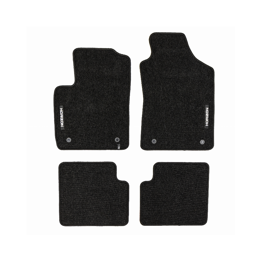 ELEGANTIŠKAS INTERJERASPremium klasės HORIZON kilimėliai išsiskiria stilinga ir modernia išvaizda, kuri puikiai paryškina automobilio salono eleganciją. Estetinis dizainas leidžia jiems sklandžiai susilieti su bet kokio tipo interjeru ir suteikti išskirtinumo.AUKŠTAS KOMFORTO LYGISDėka kilpinio kilimo konstrukcijos, bei svorio 535 g/m², HORIZON kilimėliai yra ne tik patvarūs, bet ir minkšti, ir malonūs liesti. Tai suteikia išskirtinį komfortą kiekvienos kelionės metu ir padidina kasdienio naudojimosi patogumą transporto priemone.LENGVA PRIŽIŪRĖTIHORIZON yra išskirtinai praktiškas gaminys, kurį galima greitai sumontuoti ir lengvai prižiūrėti, o tai padaro dar labiau patrauklų.ILGAAMŽIŠKUMAS IR APSAUGAHORIZON kilimėlis užtikrina ilgalaikę automobilio vidaus apsaugą, efektyviai apsaugodamas grindis nuo nešvarumų ir pažeidimų. Tvirtos konstrukcijos, pagamintas iš aukštos kokybės medžiagų, užtikrina, kad jis tarnaus ilgą laiką, išlaikant patrauklią išvaizdą.Granuliuota guminė kilimėlio apačia užtikrina puikų sukibimą ir pašalina paslydimo riziką vairuojant.Apsiuvimas polipropileno siūlu. Medžiaga – (velvet) aksomas.