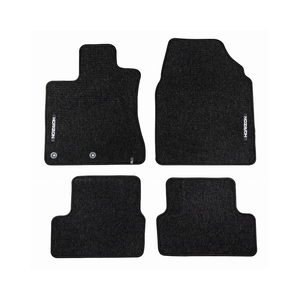 ELEGANTIŠKAS INTERJERASPremium klasės HORIZON kilimėliai išsiskiria stilinga ir modernia išvaizda, kuri puikiai paryškina automobilio salono eleganciją. Estetinis dizainas leidžia jiems sklandžiai susilieti su bet kokio tipo interjeru ir suteikti išskirtinumo.AUKŠTAS KOMFORTO LYGISDėka kilpinio kilimo konstrukcijos, bei svorio 535 g/m², HORIZON kilimėliai yra ne tik patvarūs, bet ir minkšti, ir malonūs liesti. Tai suteikia išskirtinį komfortą kiekvienos kelionės metu ir padidina kasdienio naudojimosi patogumą transporto priemone.LENGVA PRIŽIŪRĖTIHORIZON yra išskirtinai praktiškas gaminys, kurį galima greitai sumontuoti ir lengvai prižiūrėti, o tai padaro dar labiau patrauklų.ILGAAMŽIŠKUMAS IR APSAUGAHORIZON kilimėlis užtikrina ilgalaikę automobilio vidaus apsaugą, efektyviai apsaugodamas grindis nuo nešvarumų ir pažeidimų. Tvirtos konstrukcijos, pagamintas iš aukštos kokybės medžiagų, užtikrina, kad jis tarnaus ilgą laiką, išlaikant patrauklią išvaizdą.Granuliuota guminė kilimėlio apačia užtikrina puikų sukibimą ir pašalina paslydimo riziką vairuojant.Apsiuvimas polipropileno siūlu. Medžiaga – (velvet) aksomas.